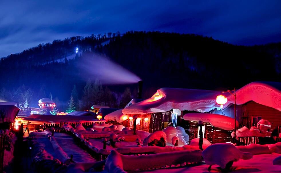 雪乡是我国降雪最大的地区,四面环山看不到日出日落,清晨,缕缕炊烟的山村犹如仙景一般。雪一盏盏的红灯笼在太阳的照射及白雪的映衬下显得格外通红透亮,傍晚、夜景更值得一拍。