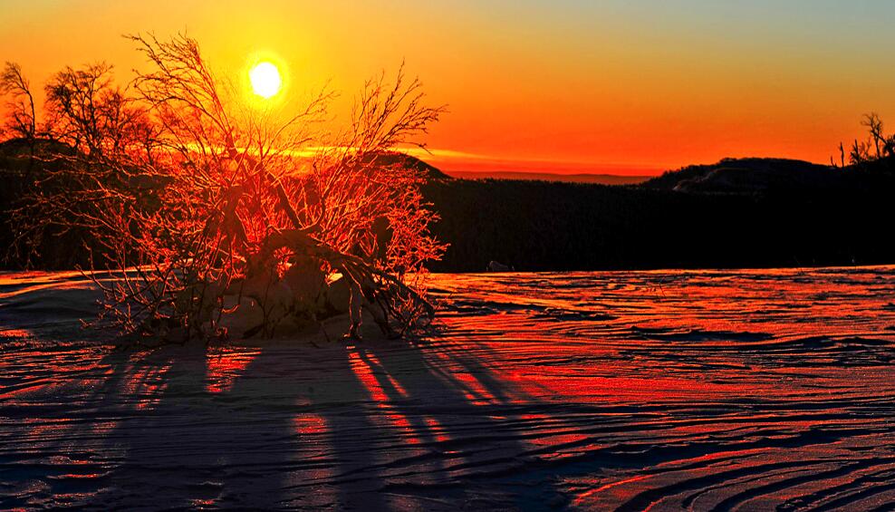 早拍雪乡晨曦中的村落、和袅袅炊烟般的木屋仙境,下午前往纤尘不染的原始雪乡二浪河林场拍日落,