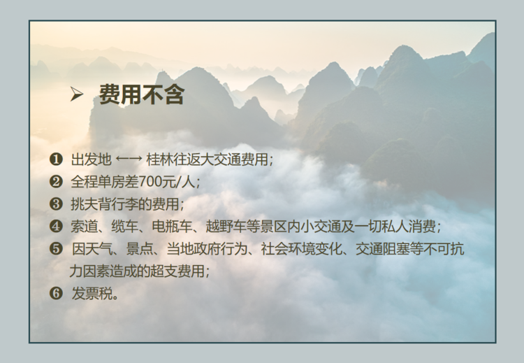 ➅ 确认报名请交报名费1000元/人,余款抵达桂林时一次性付清!