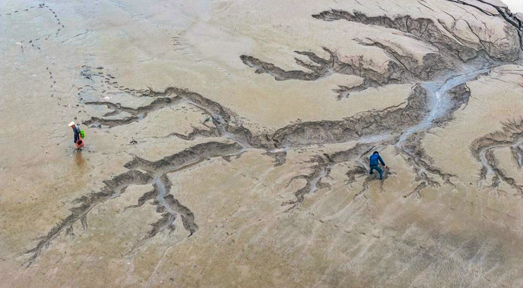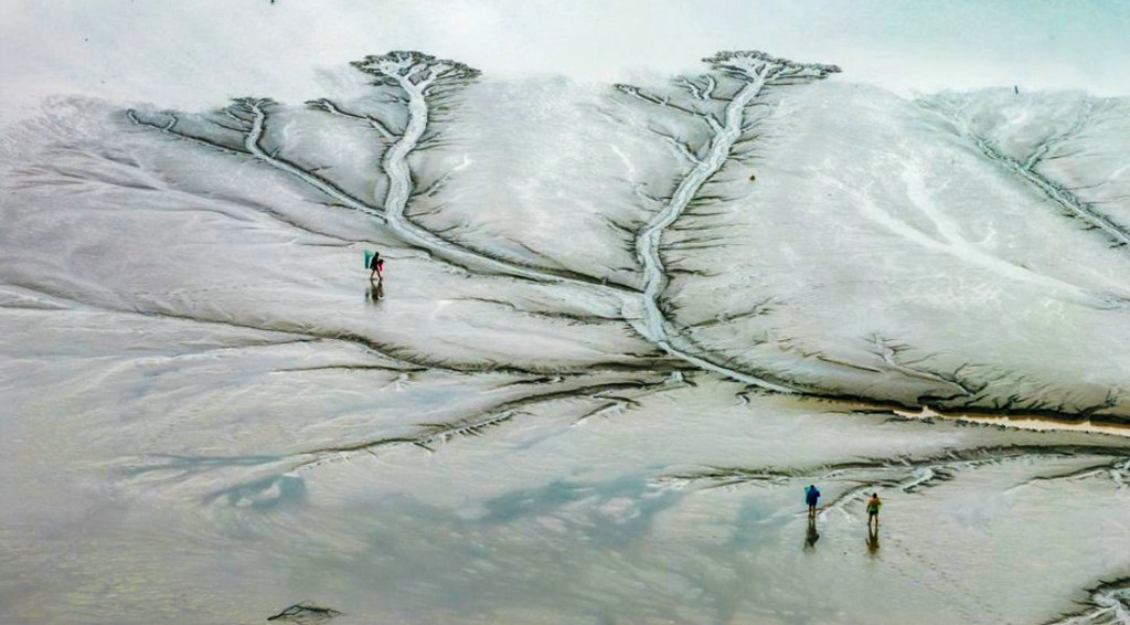 2、钱塘江因潮汐变化、滩涂变化比较复杂,每天形成的潮形和潮汐树都不一样,遇见什么就拍什么。