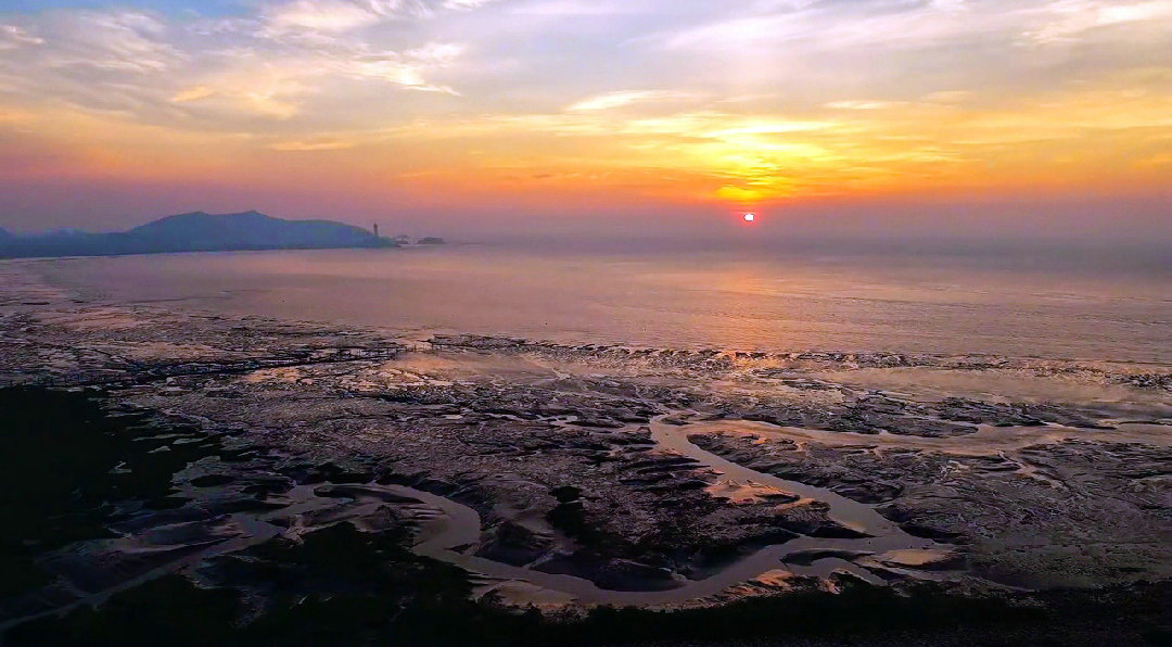 D2天:早起去航拍潮汐树(潮汐龙)日出,退潮后江边有很多的小鱼虾,滩涂上赶海人日出潮汐树美景。早餐后休息。根据潮起时间提前一小时到达拍摄点,大潮汛期间不仅有“一线潮“,还能拍摄到“波纹潮”、“鱼鳞潮”、“交叉潮”,“龙王潮”等等壮观的景象。傍晚拍摄潮汐树唯美日落,滩涂上有很多的鸟捕食,都是拍摄的好题材。晚餐后大家探讨今天拍摄的感悟和疑问,分享拍摄的作品,指导老师解答,分享第二天拍摄点位场景,拍摄方法等。通过今天的拍摄,对钱塘江的航拍有了一个新的航拍概念。(因为99.9%的老师都没有拍过钱塘江。钱塘江是一个很灵活多样的拍摄场景,同一场景可以拍出无数的不同作品,很刺激,很有挑战性,给你无数的惊喜。)(餐:早中晚,住: 钱塘江)