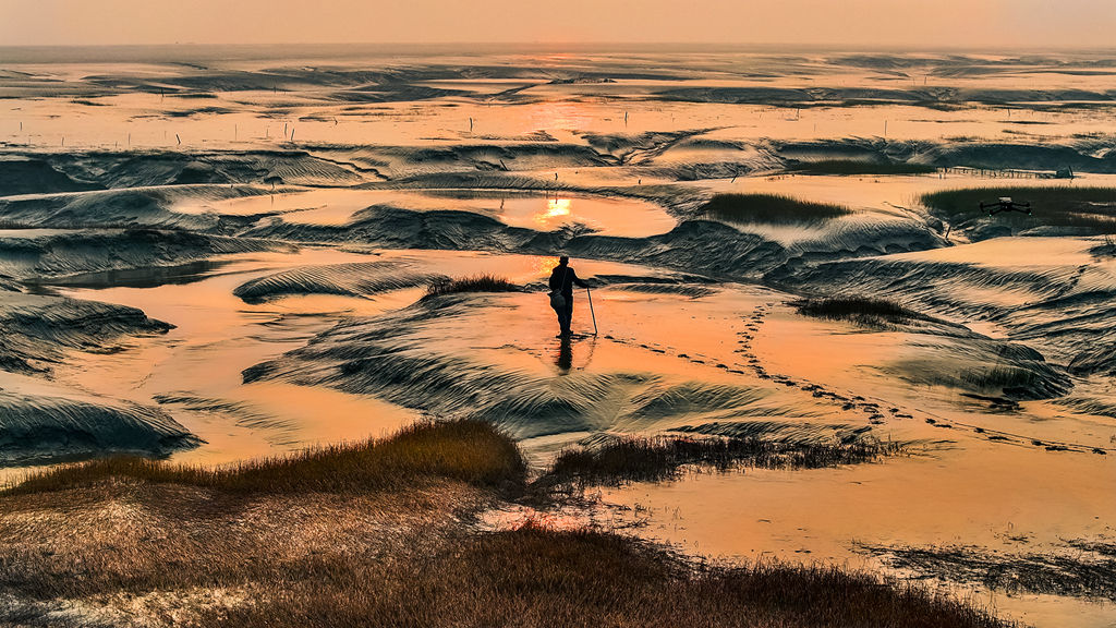 期待全国无人机飞手的加入,我们一起飞! 钱塘江不仅有气势磅礴的大潮,唯美潮汐树,日出赶海人最美身影,日落夕阳洒落在潮汐沟上的金色油画,还有潮汐沟旁鸟纷飞。每时每刻不断呈现出一幅幅壮美画面。 钱塘江不仅自然景观丰富,生态多样也极为显著,是一处无人机航拍飞友值得深入探索的自然宝地。
