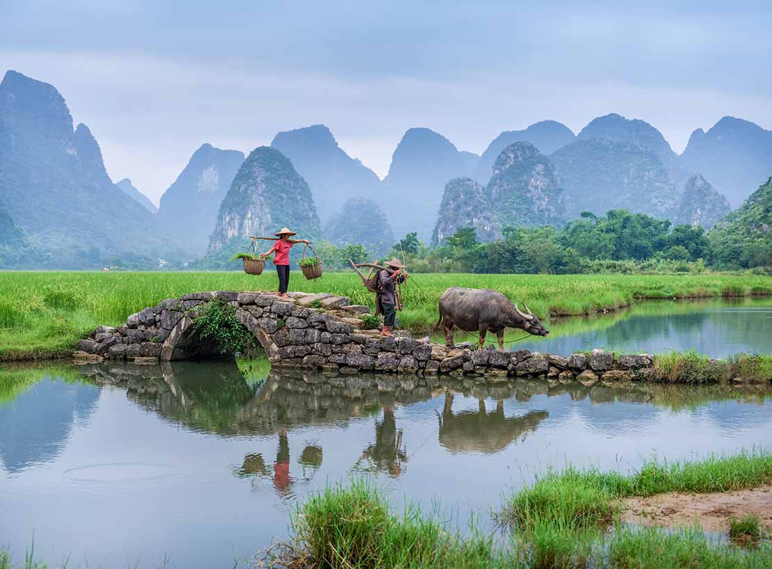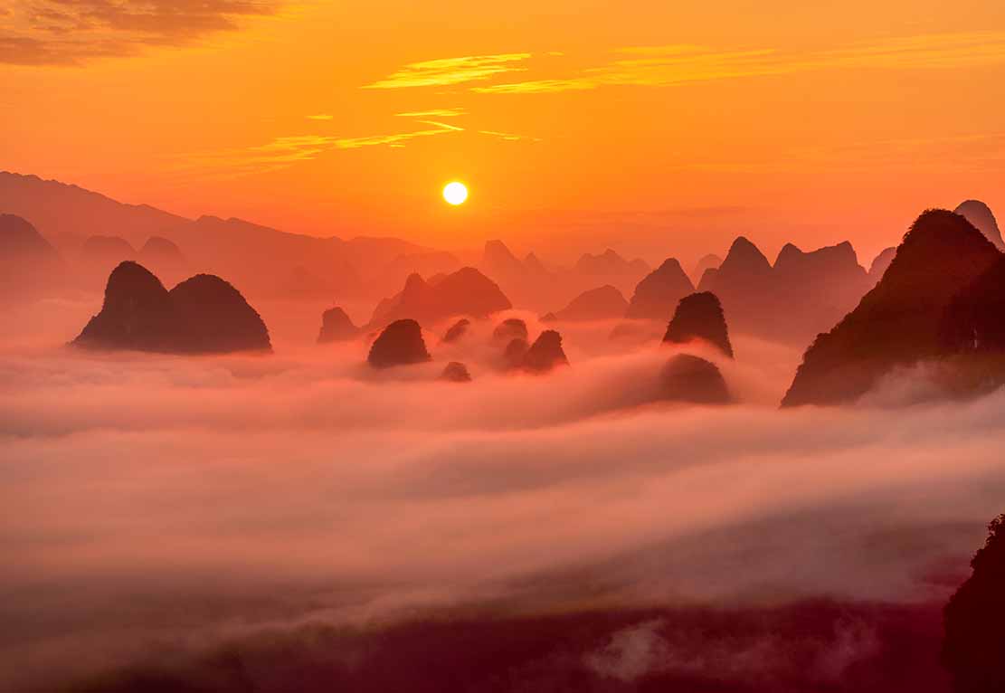早起,拍摄龙脊金坑梯田日出,拍摄完毕后用早餐,稍作休息然后乘车前往阳朔拍摄山水田园风光日落;晚上住阳朔相公山景区。