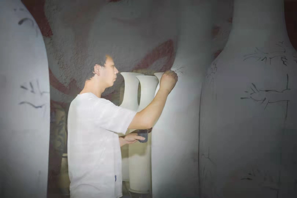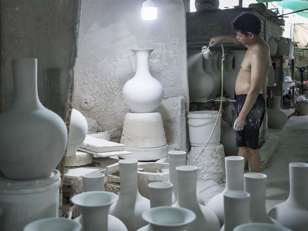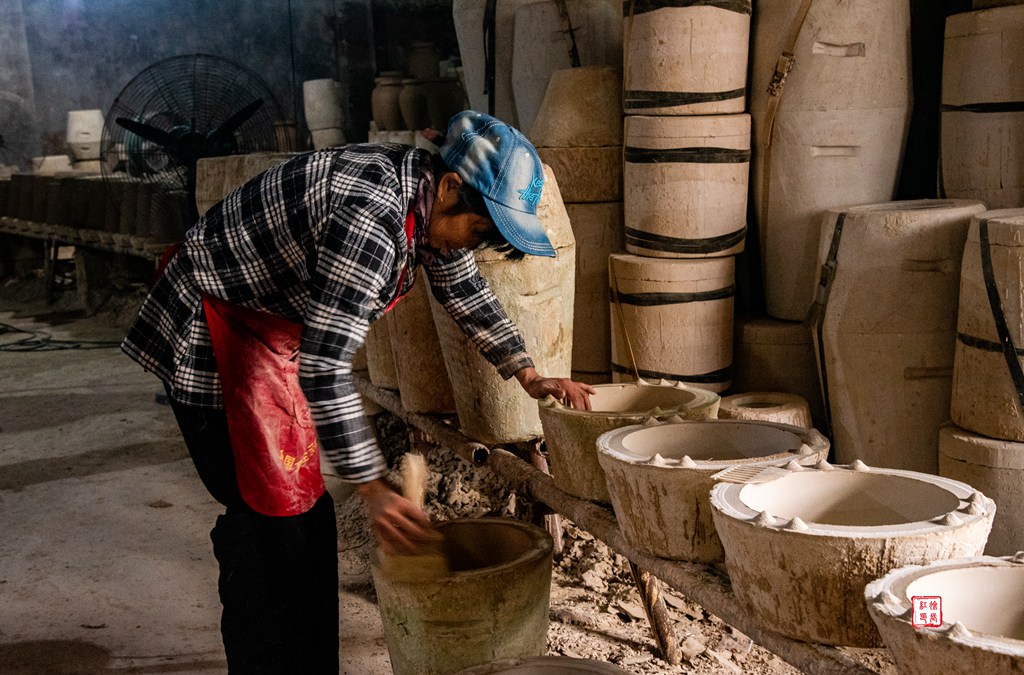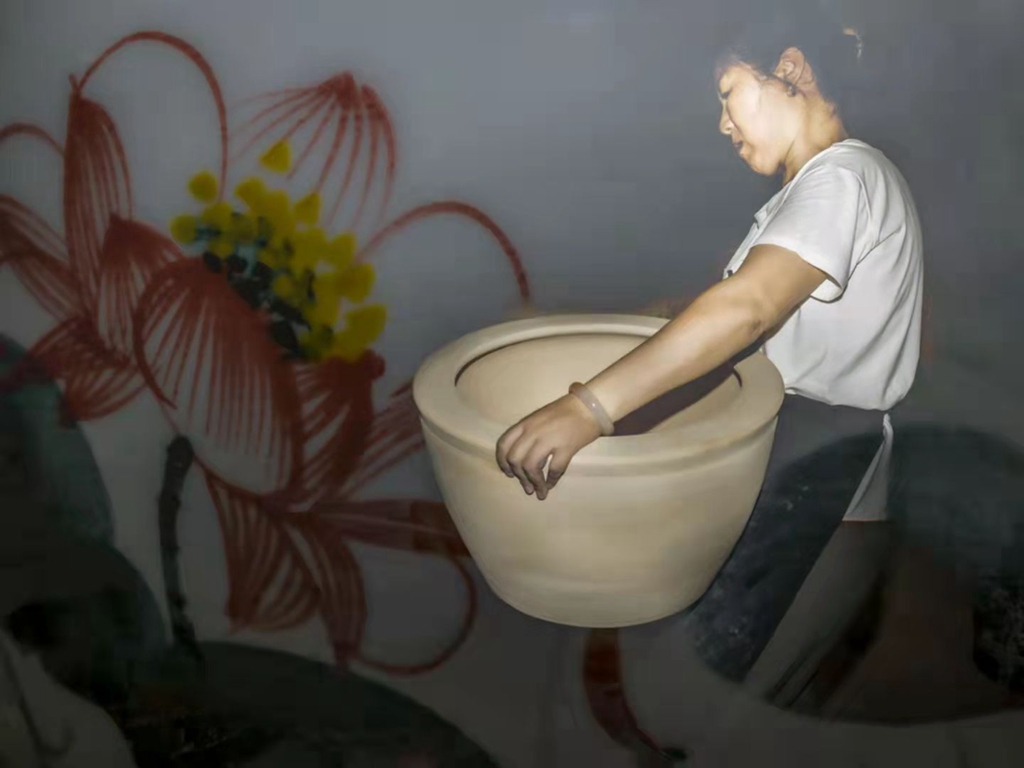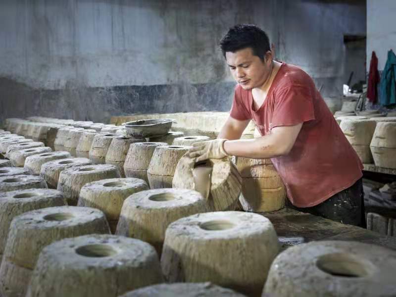 D6天:早餐后拍摄制作大花瓶灌浆、接瓶、喷釉、印花,出窑等场景。下午拍摄老酒坊蒸杂粮、摊凉、拌酒曲、装缸、蒸馏酒全套做酒场景。(含早中晚餐)