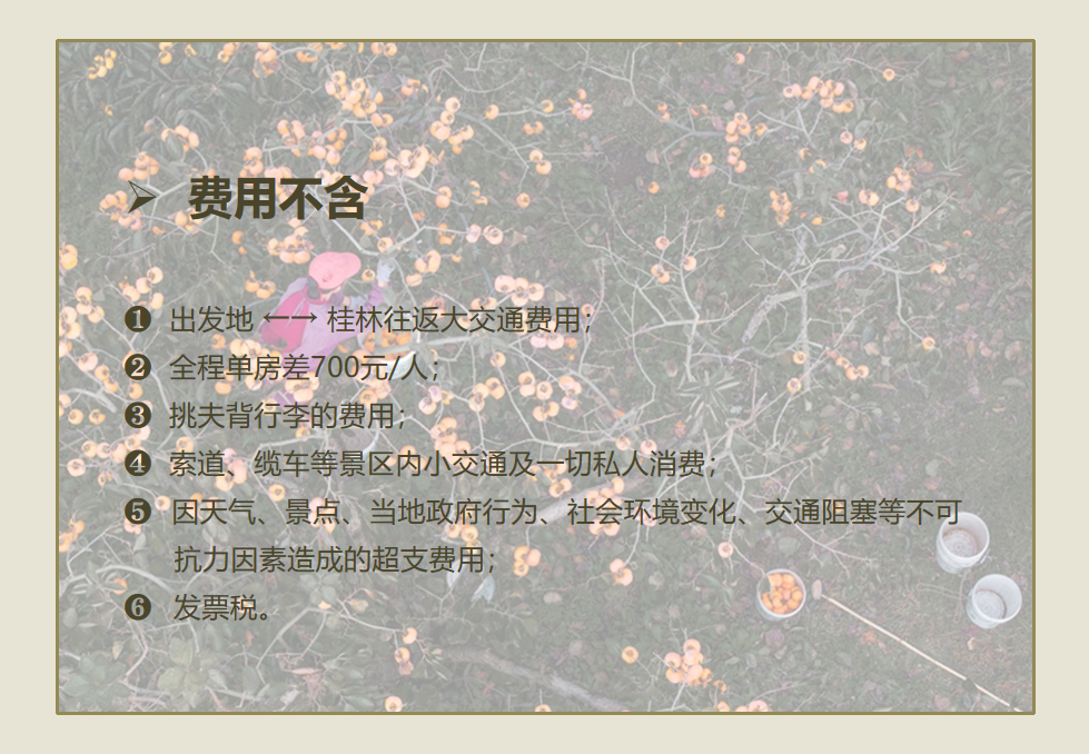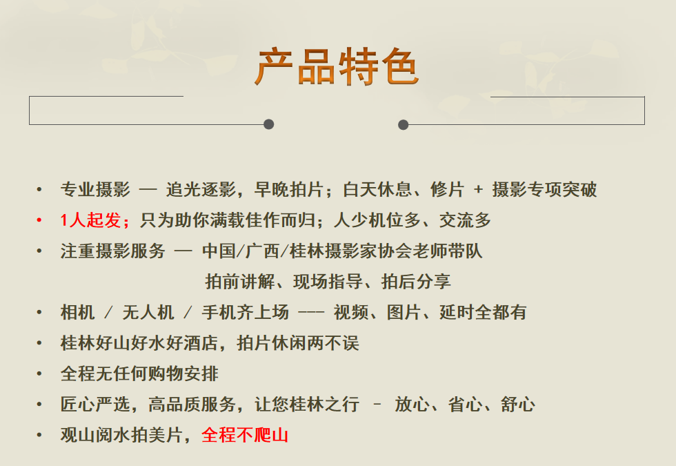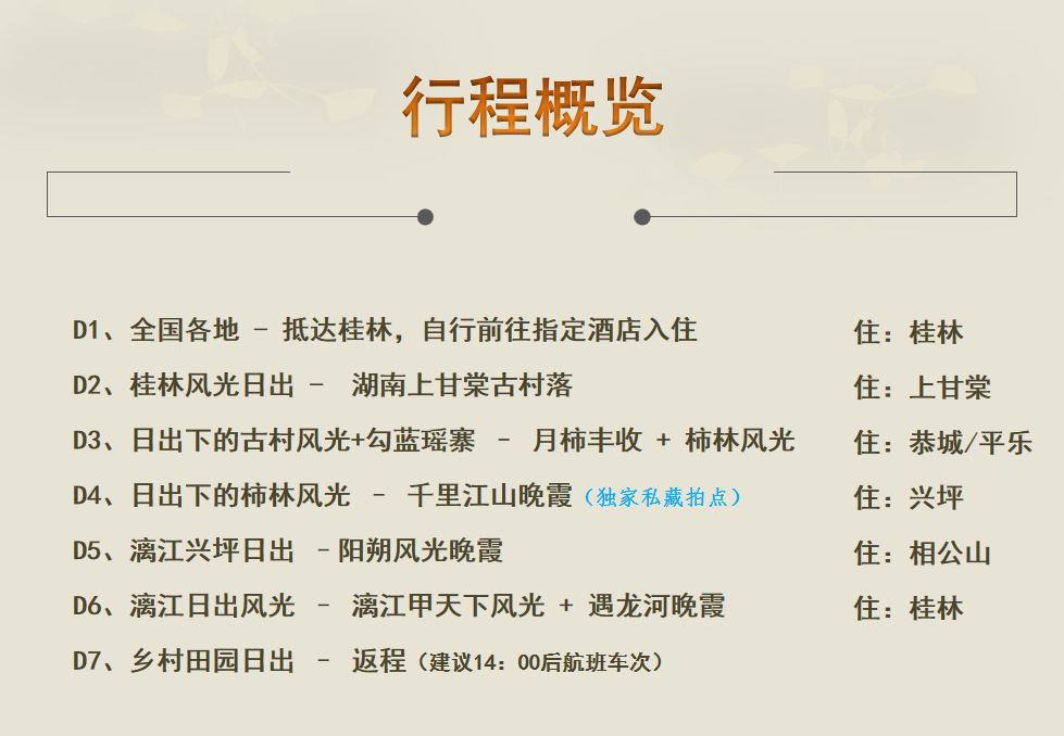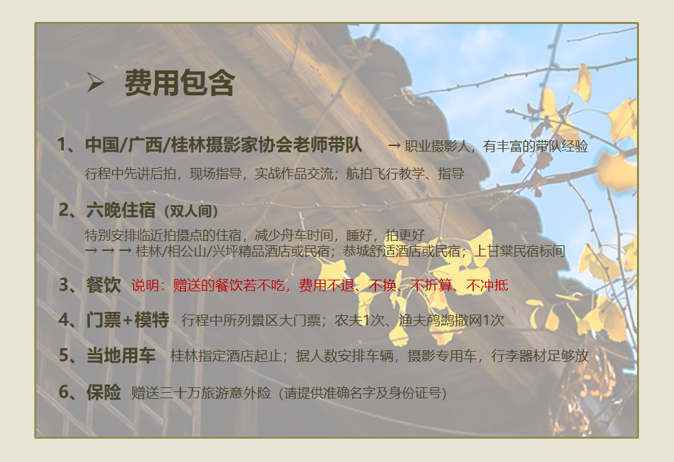 ➅ 确认报名请交报名费1000元/人,余款抵达桂林时一次性付清!