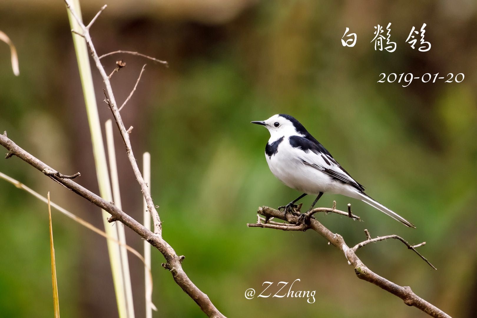 白鹡鸰(学名:Motacilla alba):是雀形目鹡鸰科的鸟类,属小型鸣禽,全长约18厘米,翼展31厘米,体重23克,寿命10年。体羽为黑白二色。栖息于村落、河流、小溪、水塘等附近,在离水较近的耕地、草场等均可见到。经常成对活动或结小群活动。以昆虫为食。觅食时地上行走,或在空中捕食昆虫。飞行时呈波浪式前进,停息时尾部不停上下摆动。繁殖期在3-7月,筑巢于屋顶、洞穴、石缝等处,巢由草茎、细根、树皮和枯叶构成,巢呈杯状。每窝产卵4-5枚。主要分布在欧亚大陆的大部分地区和非洲北部的阿拉伯地区,在中国有广泛分布。