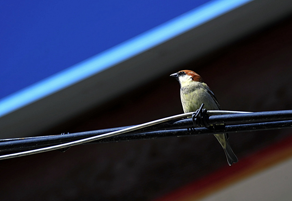 山麻雀(学名:Passer rutilans):小型鸟类,体长13-15厘米。雄鸟上体栗红色,背中央具黑色纵纹,头棕色或淡灰白色,颏、喉黑色,其余下体灰白色或灰白色沾黄。雌鸟上体褐色具宽阔的皮黄白色眉纹,颏、喉无黑色。