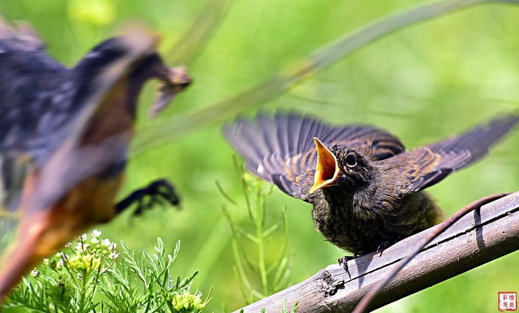 赭红尾鸲(学名:Phoenicurus ochruros):小型鸟类,体长13-16厘米。雄鸟前额、头侧、颈侧、颏至胸概黑色,头顶和背灰色或黑色,腰、尾上覆羽、尾下覆羽、外侧尾羽和腹栗棕色,中央尾羽褐色,两翅黑褐色。雌鸟上体和两翅淡褐色,尾上覆羽和外侧尾羽淡棕色,中央尾羽褐色,下体浅棕褐色。