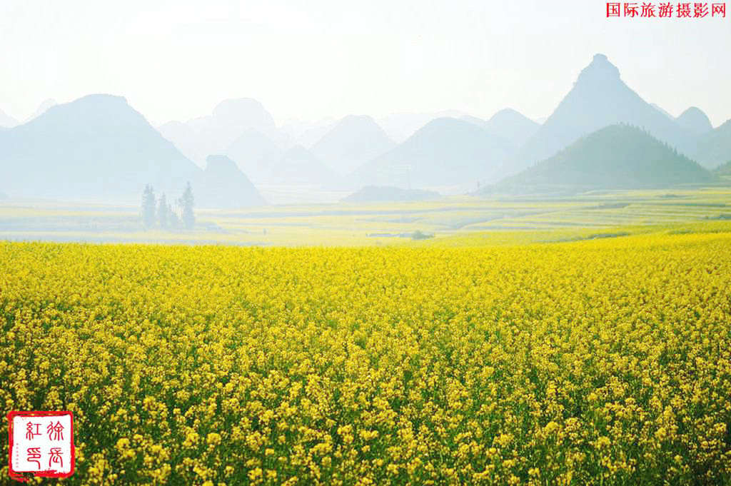 每年的2月到3月是拍摄罗平油菜花田的最佳时机,在阳光的照耀下,金色的花海伴随在春风和牧歌,翻滚着细碎的浪花,附近秀丽的山峰、古朴的村舍、蜿蜒的小路河流,皆融汇到油菜花海,构成一幅灿烂美妙的画卷。