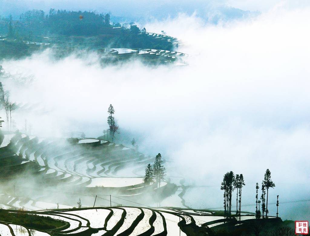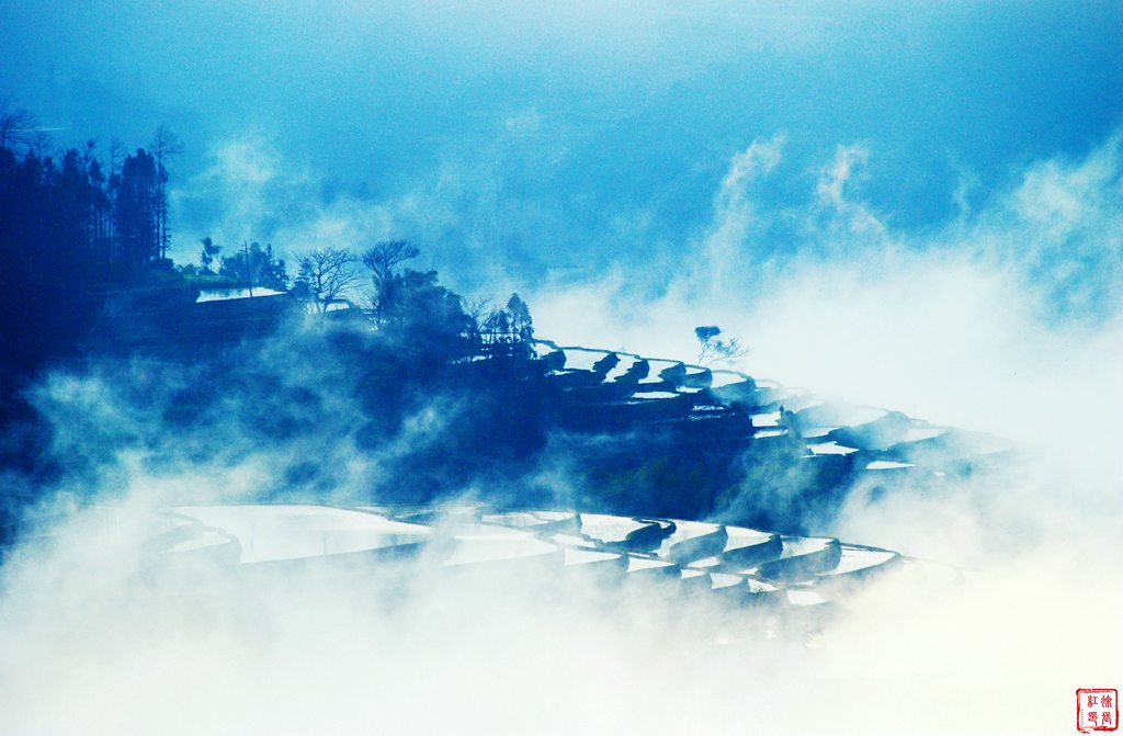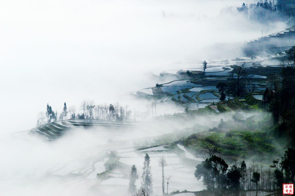 元阳梯田:每年这个季节,哈尼族老乡会把遍布山岭的泉水、溪流引进梯田里“泡田”为5月的栽秧做准备,此时所有的梯田都幻化成一面面镜子,映射着蓝天、白云、朝霞和夕阳形成美不胜收的光影变化。而纵横交错的阡陌也清晰地编造出世间最美丽而繁复的线条,如同恢宏的乐章和激动人心的节奏。同时,这个季节早晚与白天的温差很大,每天清晨随着温度升高,水分形成浓雾弥漫起来,渐渐变成云海遮掩住梯田。一眼望去犹如仙境。