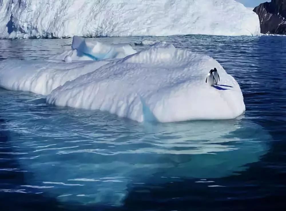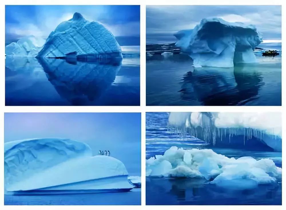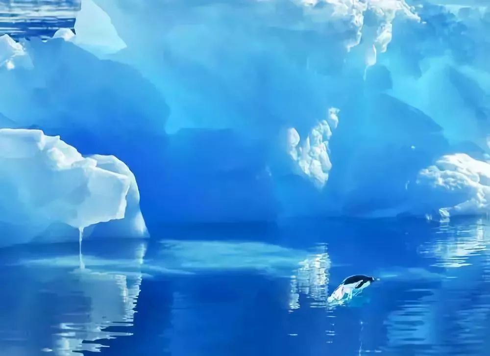 冰山在海中漂浮,所呈现的蓝色是因为积雪压缩而令雪里的空气减少,让光线折射出来的色彩更冰蓝!