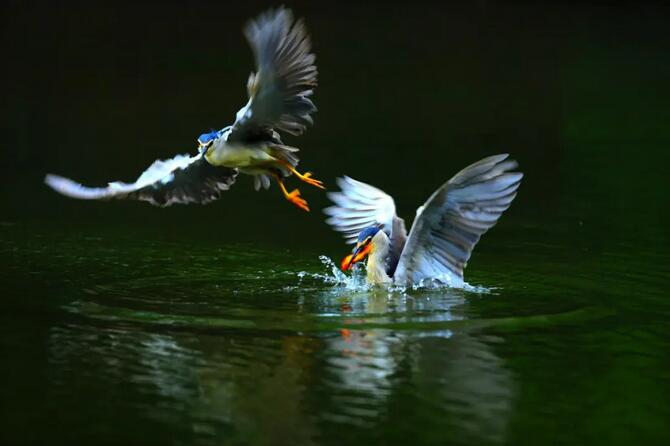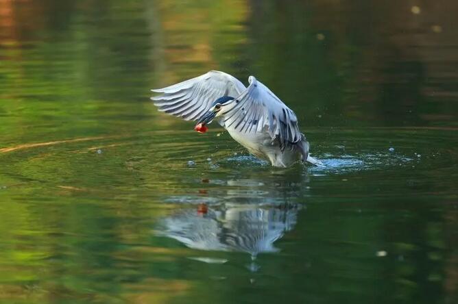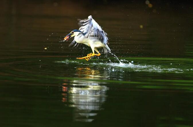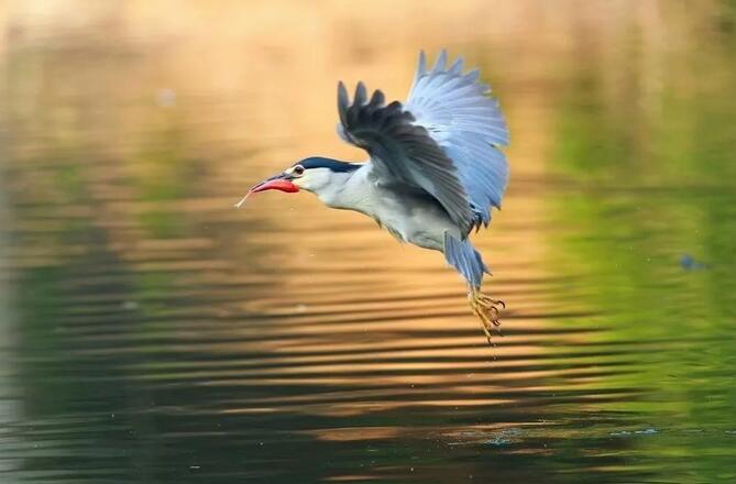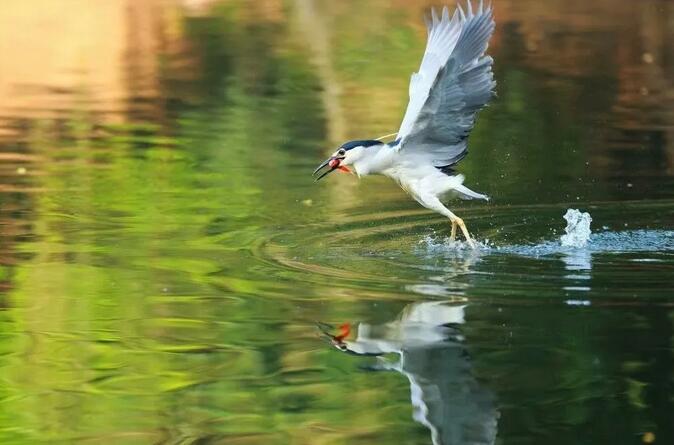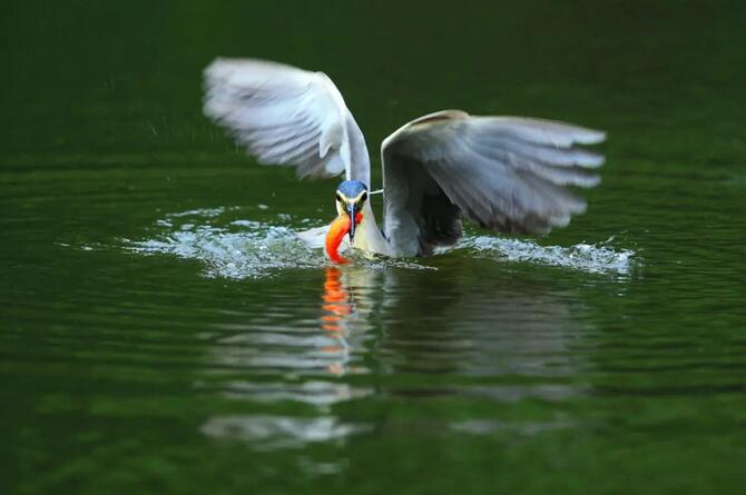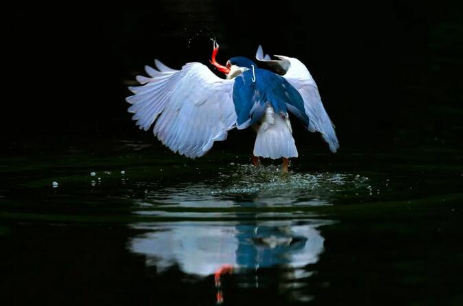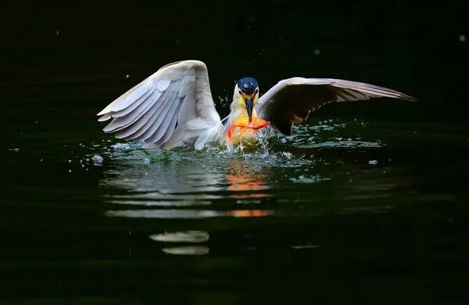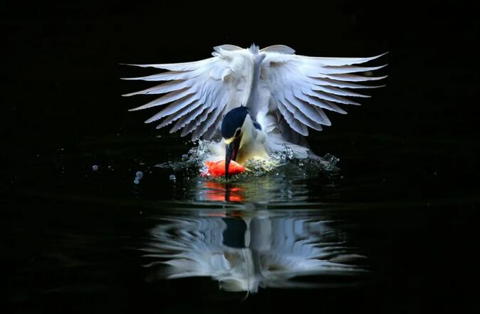 拍摄夜鹭捕食,我会目不转睛地盯着拍摄对象。夜鹭闪电式的飞捕,稍不留神就会错失那些精彩画面。高速连拍,定格瞬间;慢速追随,动感呈现。可当我回放那些影像,却在精彩中看到了另一种意象,那就是弱肉强食的残酷。夜鹭的精彩和红鱼的悲哀,锁定在同一幅画面里。自然界是这样,人类社会也是这样,弱者的生存之道,只有强大自己。