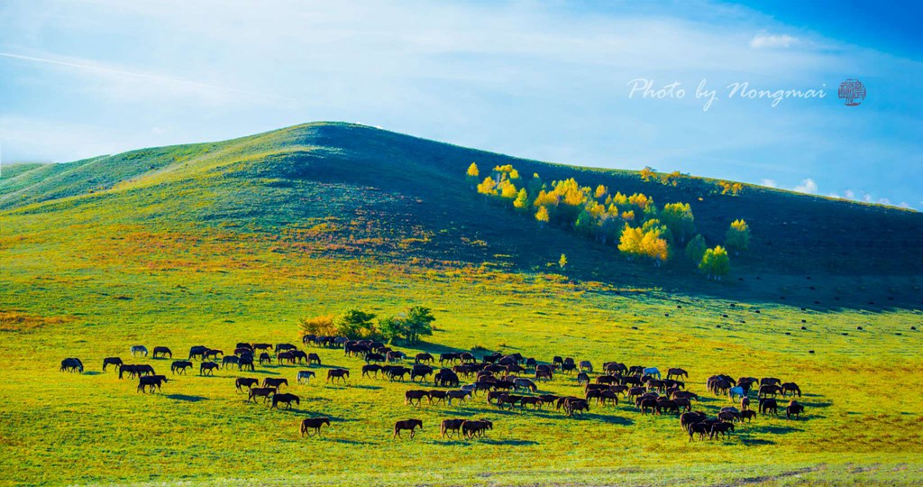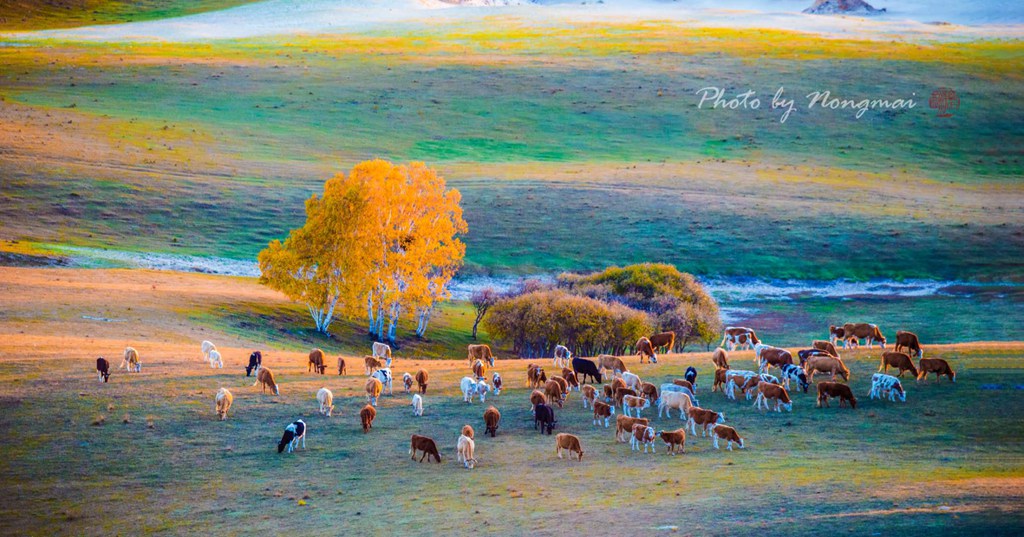 一群群牛群马群散落在原野上悠闲地吃草,骑马的放牧人跟随其后,俨然一幅幅自然天成的秋牧图,把静寂寥廓的山野秋色衬托得更加鲜活灵动、朦胧静谧。坝上...