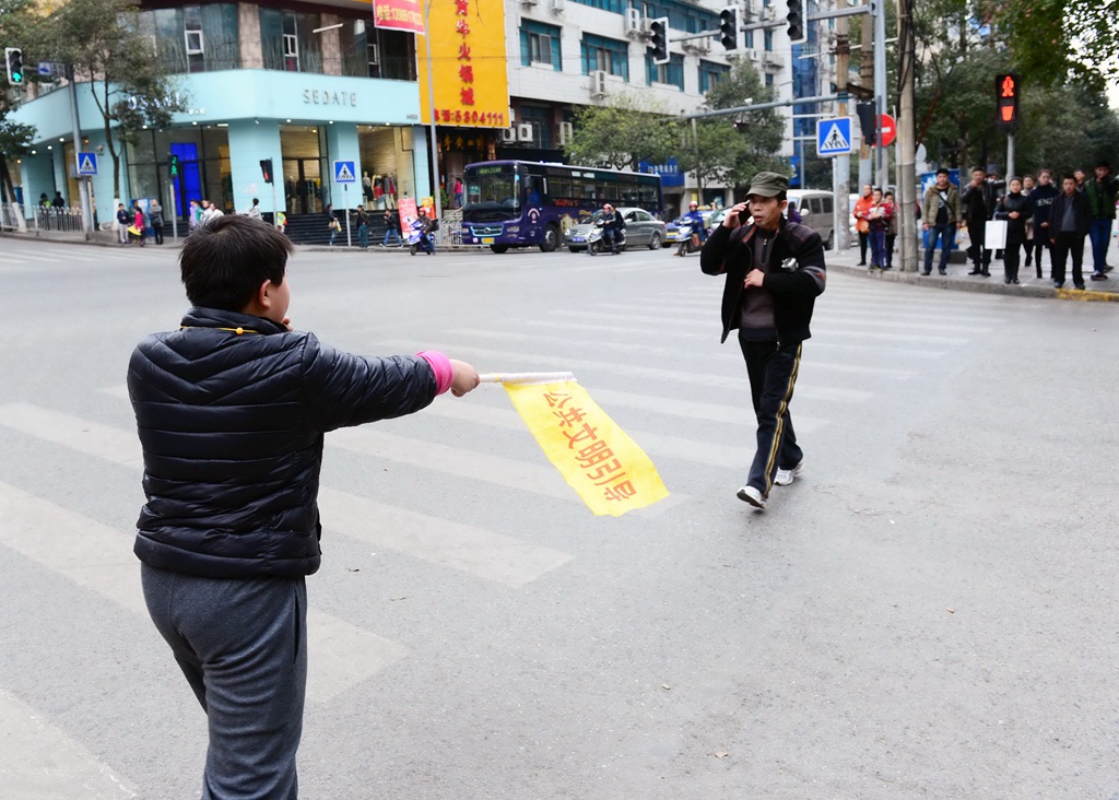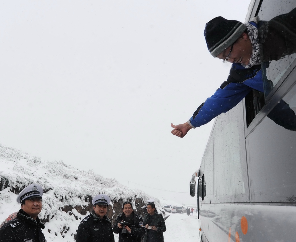 冰雪中交警顶瓜瓜