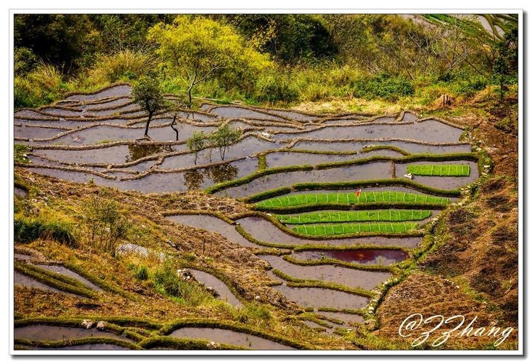 哈尼族以数十代人毕生心力,垦殖了成千上万梯田,将沟水分渠引入田中进行灌溉,因山水四季长流,梯田中可长年饱水,保证了稻谷的发育生长和丰收。哈尼族垦殖梯田的想象力令人惊绝,其随山势地形变化,因地制宜,坡缓地大则开垦大田,坡陡地小则开垦小田,甚至沟边坎下石隙之中,无不奋力开田,因而梯田大者有数亩、小者仅有簸箕大,往往一坡就有成千上万亩。这一景观构成了千奇百态变幻莫测的天地艺术大交响乐,成为举世瞩目的梯田奇观。