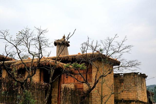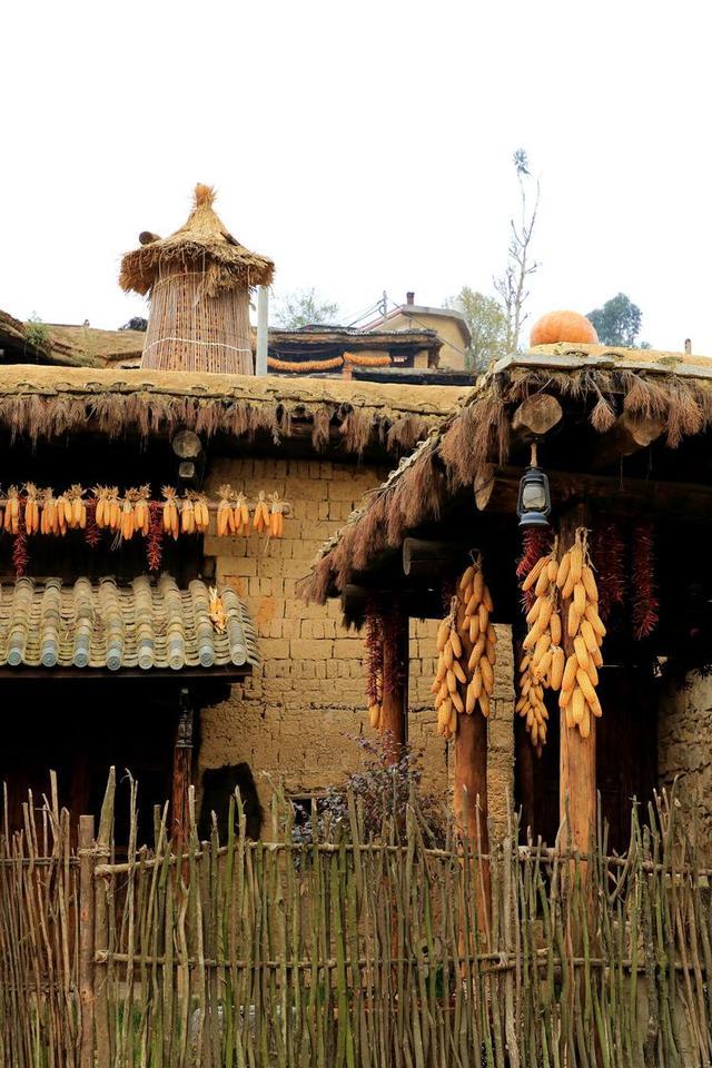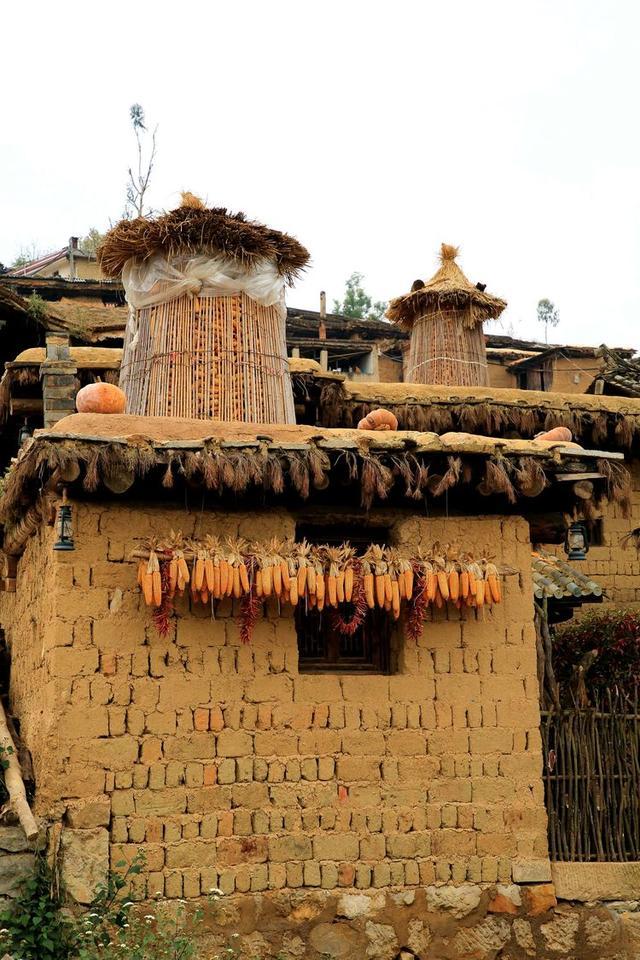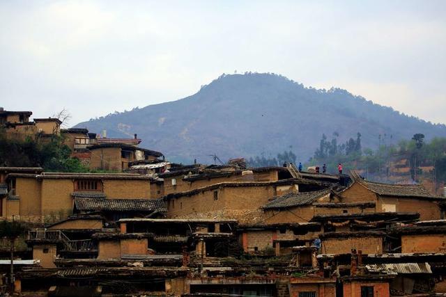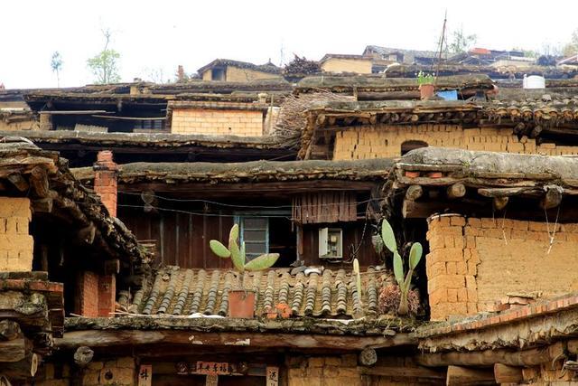 村寨的整体布局依山就势,西高东低,背山面水,顺山势而行,层层跌落。房屋为土掌房,以土筑墙,以木料、茅草和土石为建筑原料。现有土掌房有机融合了汉式民居与彝族传统土筑民居建造技术,层层相衔,上下相通,左右连贯,层层叠起,下屋屋顶是上家庭院,家家有屋顶,家家有庭院,形成别具一格的建筑特色,远眺古村村寨,恰似“布达拉宫”,蔚为壮观。