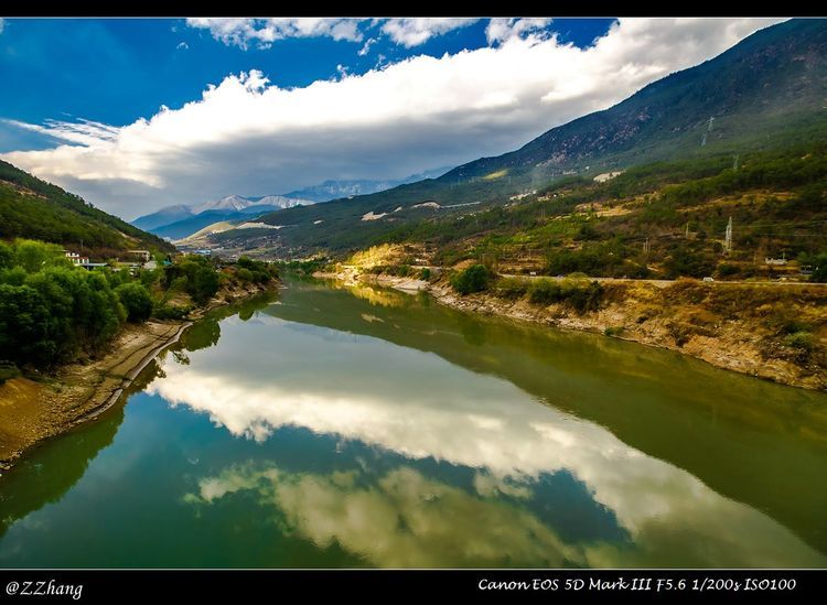 中午时分,离开沙溪古镇。继续赶路,去看看位于云南省丽江玉龙纳西族自治县石鼓镇的“长江第一湾”。从X084县道返回上214国道行驶一段路后拐向S225省道。没多远,看见金沙江,兴奋起来,停车拍照。