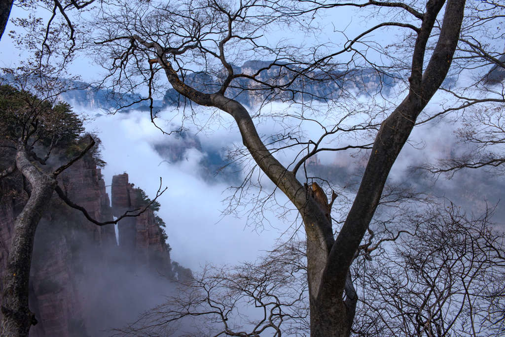 我在拍摄天界山时,用的是尼康相机,在天界山上上下下,360度来回追逐,早起达黑。云海霞光,石壁夜景,无不涉猎。所以三脚架、快门线、长短镜头一起上。这样好的地理环境,使得美妙景色尽收囊中。