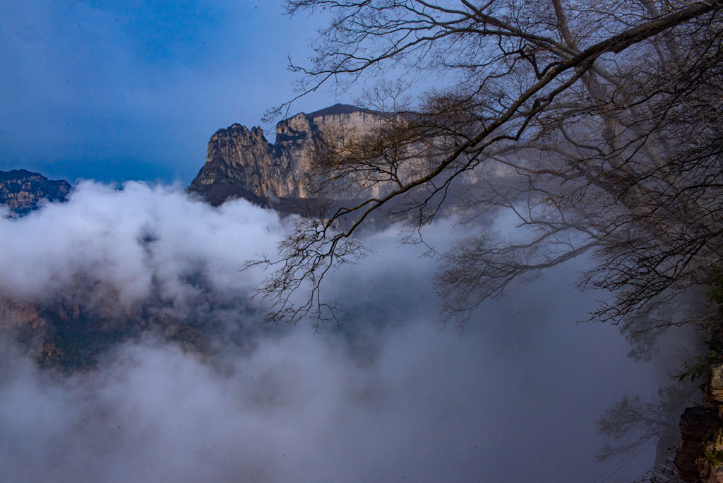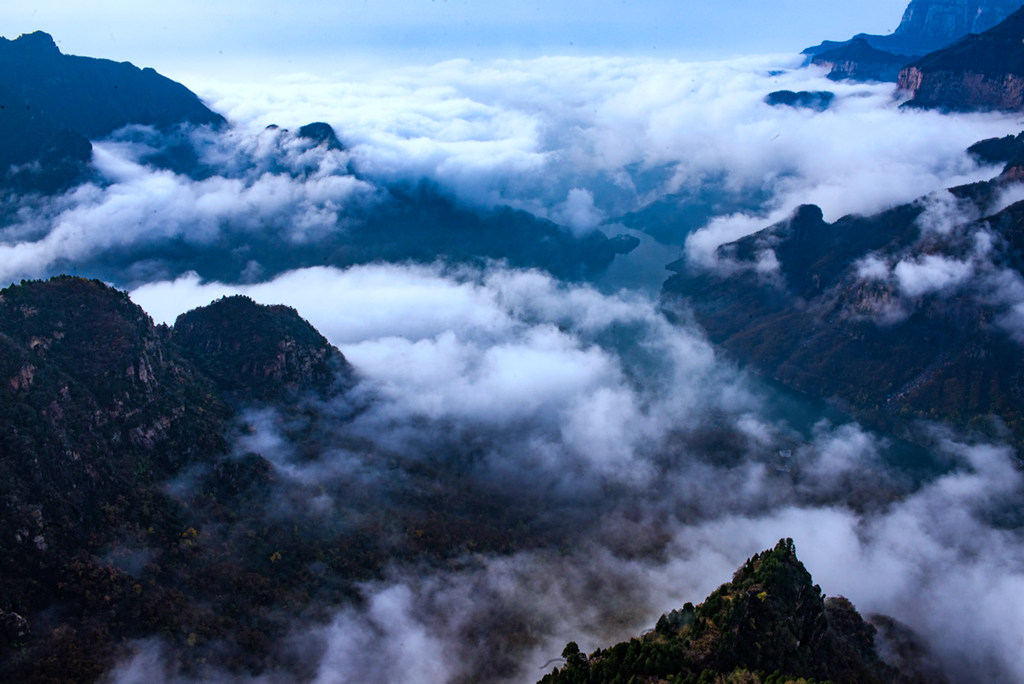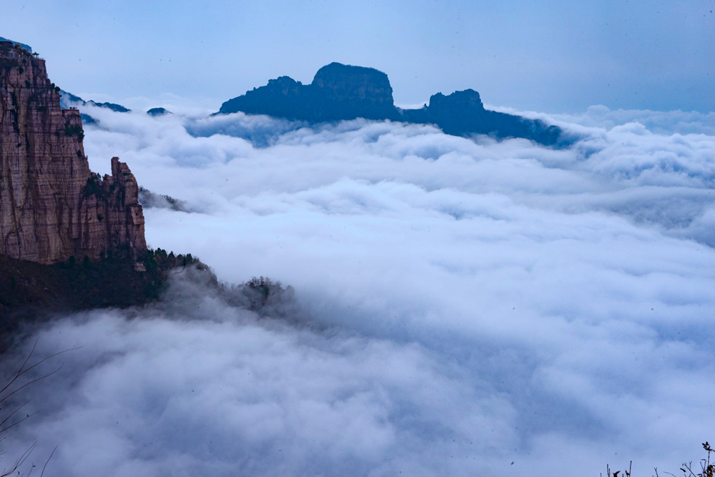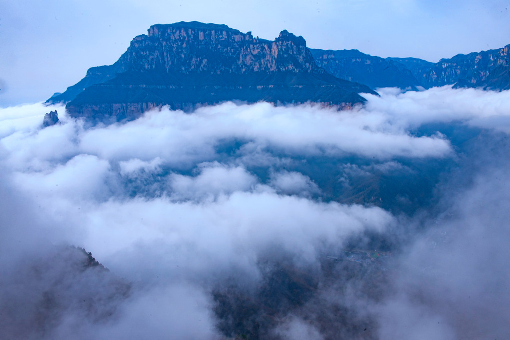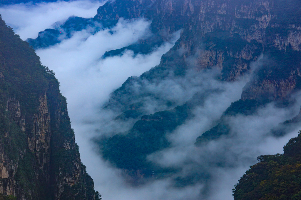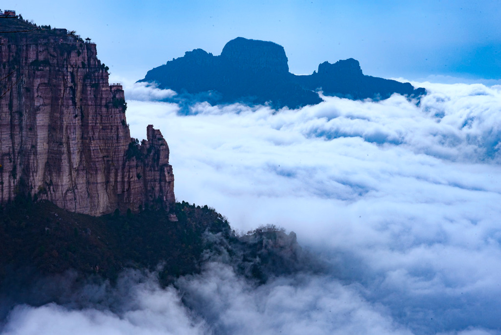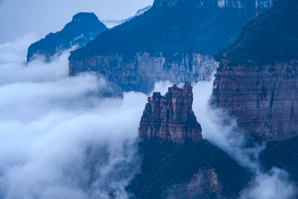 南太行山的 “太行至尊”王莽岭位于河南辉县与山西省陵川交界处,处于黄土高原与华北平原地质断裂带上,由60余个山峰组成,是太行山风光的代表之一,最高海拔1762米,驻足山顶,太行山雄姿尽收眼底。十字岭最高海拔1780米,号称南太行最高峰,素有太行小峨眉之称。如果夏天或者冬天去太行山拍摄。大都要选择在雨中、雾中、雪中等特殊天气。太行山的苍凉、凝重在这些特殊气氛下才能得以展现。雨雾中的太行神秘、幽静,是一幅烟云笼罩水墨般的画面,似云非云,似雾非雾,浓淡虚实,扑朔迷离;云海的出现使太行更加奇异,山涧升腾的云雾会突然集聚成滔滔云海,气势磅礴地覆盖脚下的群山,在峡谷中,无声无息地翻滚飘动……大雪中的太行浑莽、端妆、皑皑白雪,铺天盖地,峡谷气势如虹,峭壁顶风傲雪,白雪遮掩下的赤壁似铮铮铁骨。在这万簌静寂的世界里,整个心灵都被净化了。