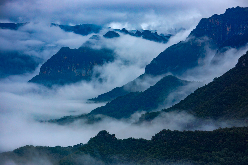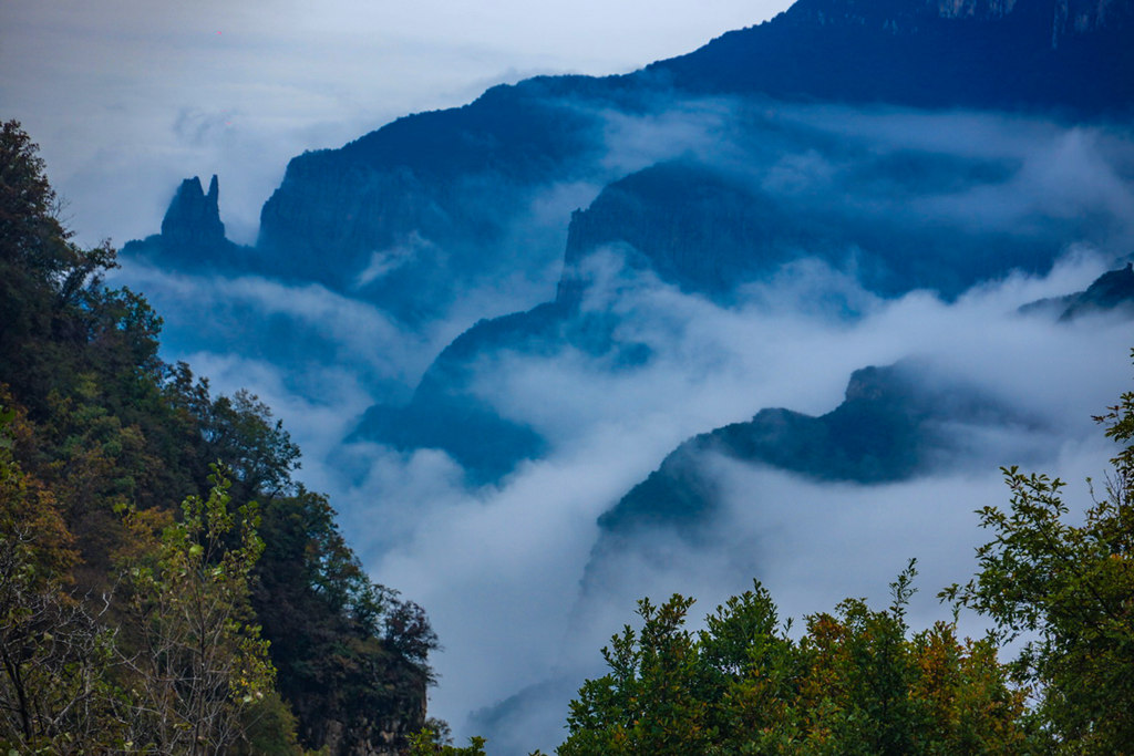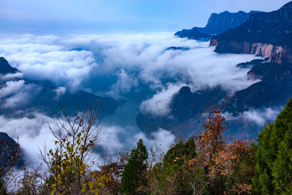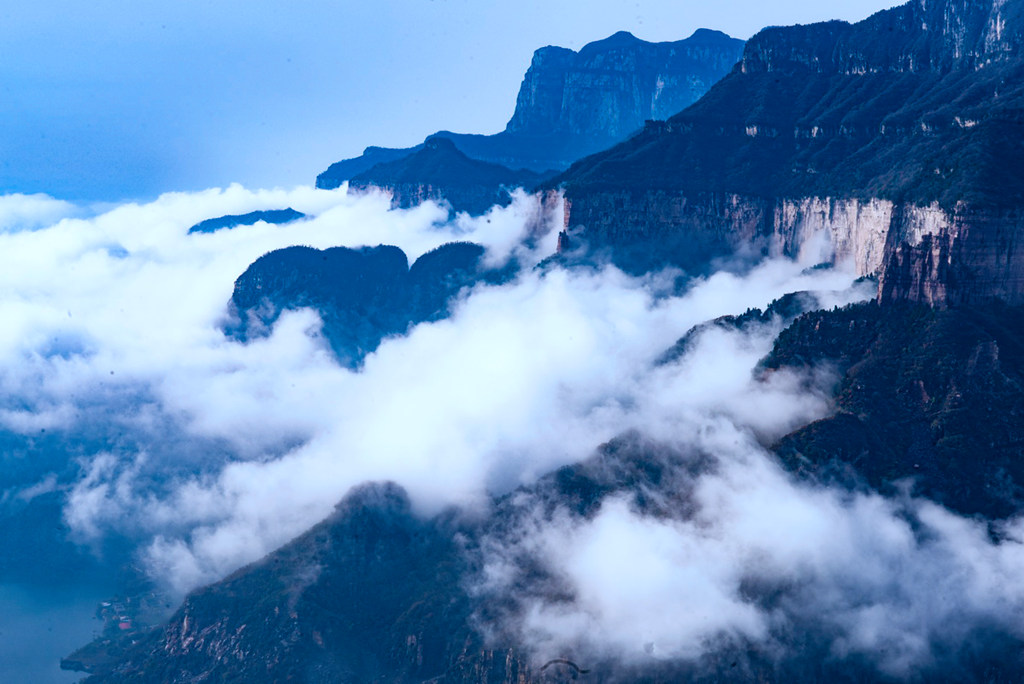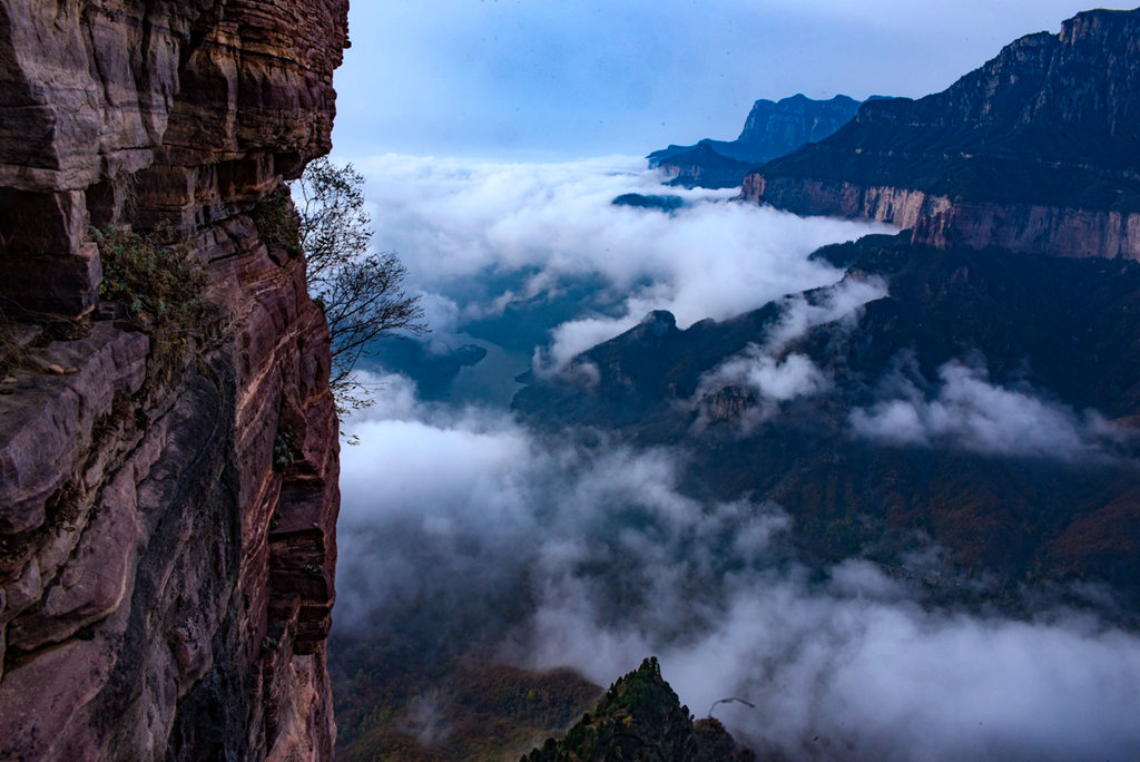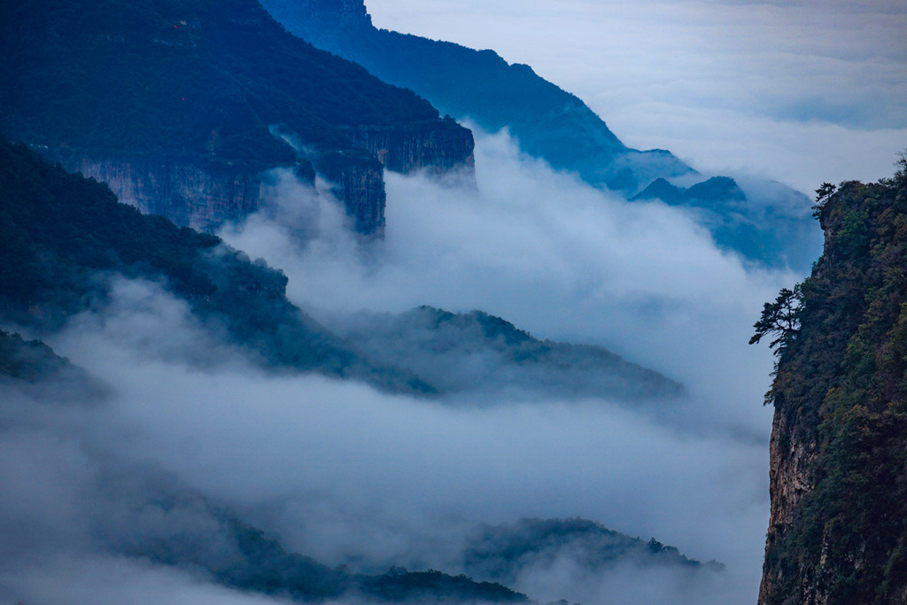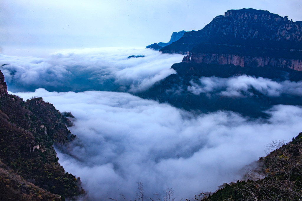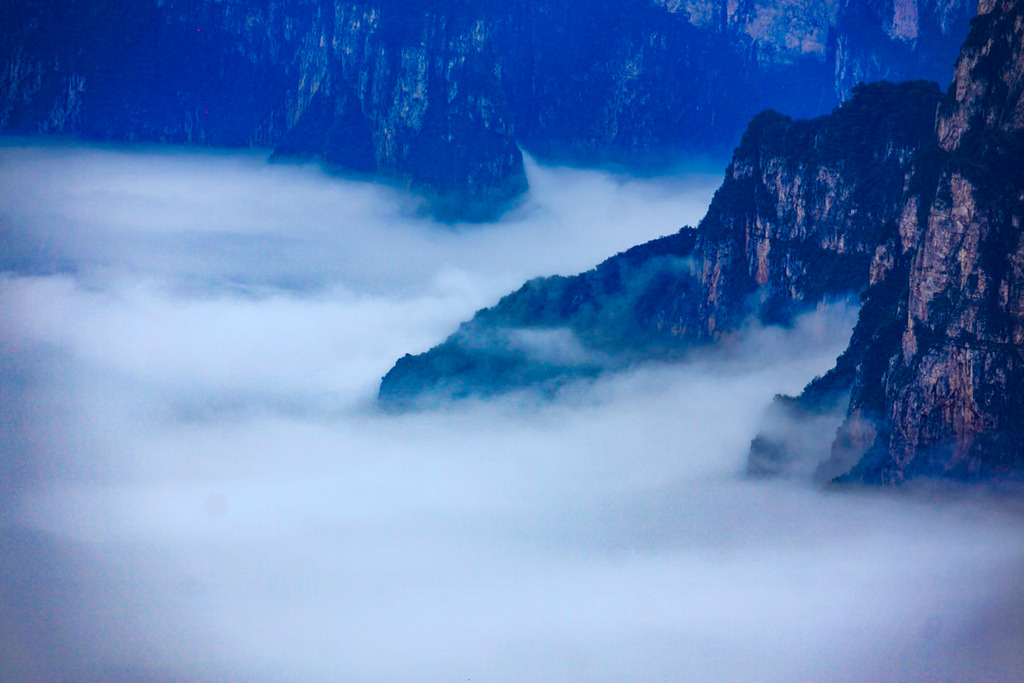 南太行山的 “太行至尊”王莽岭位于河南辉县与山西省陵川交界处,处于黄土高原与华北平原地质断裂带上,由60余个山峰组成,是太行山风光的代表之一,最高海拔1762米,驻足山顶,太行山雄姿尽收眼底。十字岭最高海拔1780米,号称南太行最高峰,素有太行小峨眉之称。如果夏天或者冬天去太行山拍摄。大都要选择在雨中、雾中、雪中等特殊天气。太行山的苍凉、凝重在这些特殊气氛下才能得以展现。雨雾中的太行神秘、幽静,是一幅烟云笼罩水墨般的画面,似云非云,似雾非雾,浓淡虚实,扑朔迷离;云海的出现使太行更加奇异,山涧升腾的云雾会突然集聚成滔滔云海,气势磅礴地覆盖脚下的群山,在峡谷中,无声无息地翻滚飘动……大雪中的太行浑莽、端妆、皑皑白雪,铺天盖地,峡谷气势如虹,峭壁顶风傲雪,白雪遮掩下的赤壁似铮铮铁骨。在这万簌静寂的世界里,整个心灵都被净化了。