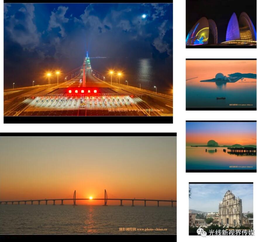 港珠澳大桥局部、香洲全景、吉大全景、圆明新园、外伶仃岛。