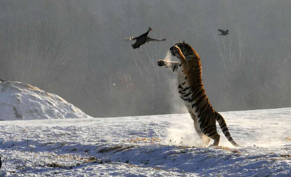 拍摄内容:早餐后乘车赴横道河子镇。全天在横道河子林海雪原拍摄东北虎。几十只处于繁殖交配期的东北虎威风凛凛,在厚厚的雪地里欢腾跳跃,饿虎扑食,很是壮观。当地摄影老师精彩导虎,为影友拍大片创造好条件。下午到达牡丹江市结束摄影之旅。