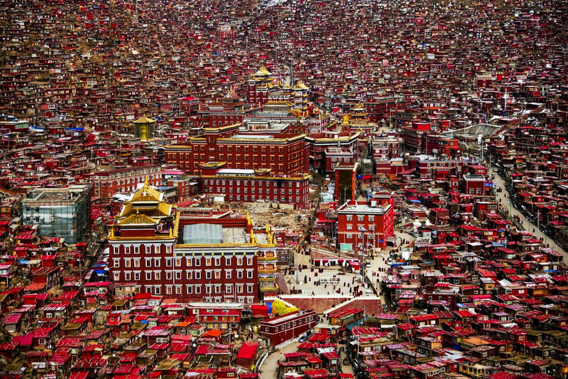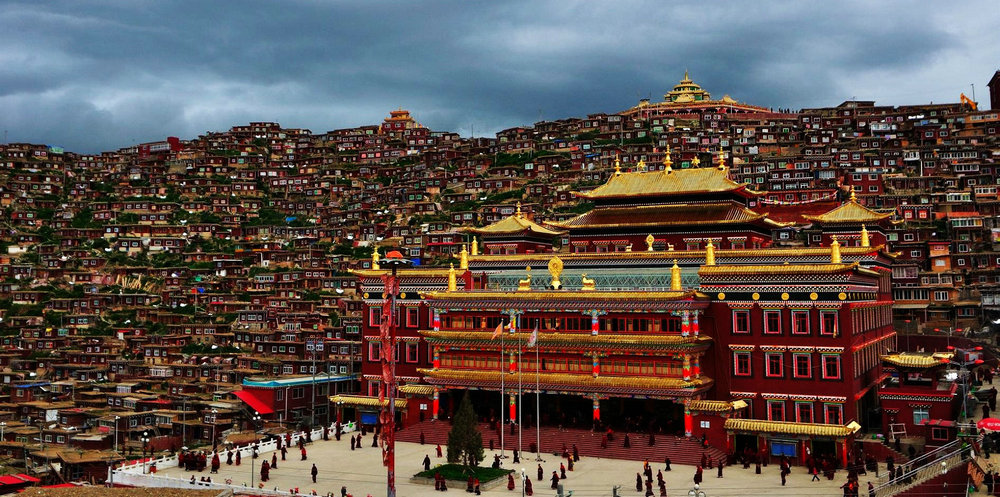 亚青寺:位于川西甘孜州白玉县沙鲁里雪山下,海拔3600米以上,属藏传佛教宁玛派。亚青寺建在草原湿地上,这里修行的僧尼达数万人,周围都是密密麻麻的小木屋,大多数都是僧尼的僧舍。纵横交错的河流包围了整个寺庙的建筑群,每当清晨或黄昏,炊烟弥漫,河水闪耀着粼粼的金光,恍如世外桃源。远处颂经声随风飘来,犹如天籁,动人心弦,仿佛自己的心灵顿时被洗涤了一般。