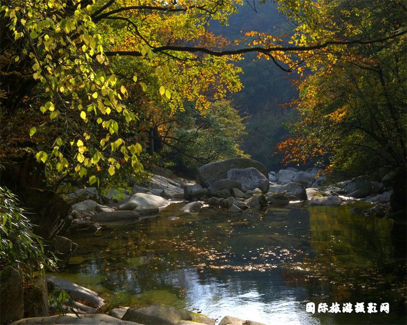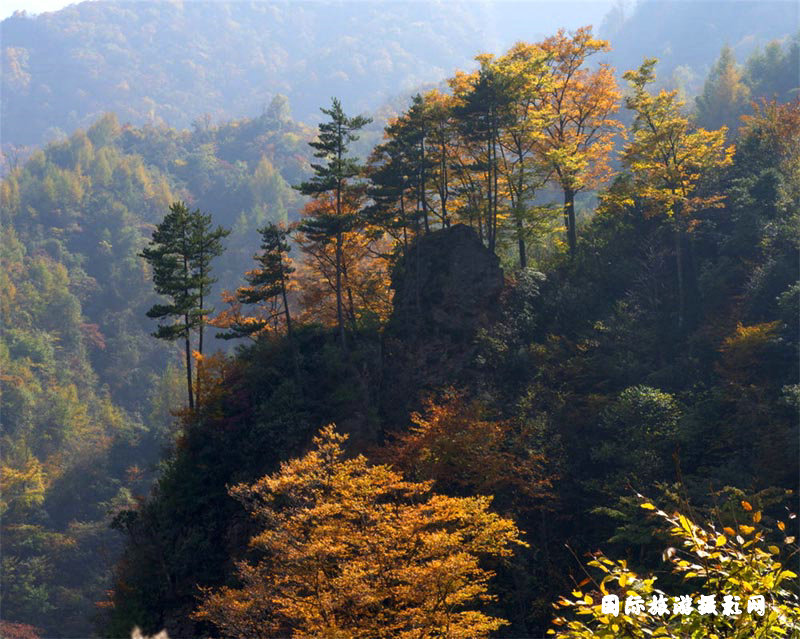 光雾山位于四川省南江县北部边缘的大巴大深处,与陕西省相邻。光雾山奇峰林立,林海苍莽,清泉潺流,清新沁人。而到金秋则万山红遍、层林尽染,奇峰彩林、红叶清泉共同组成一个如梦如诗的的绚丽世界。每当秋霜悄然降临,那一团团金黄、橙红、橘红、深红渐渐在绿海中蔓延开来,绿托着红,红托着黄,彼此偎依,相互映衬。随着秋的脚步,那火红渐渐掩盖了所有的绿,那红让人沉醉,红出了“丹枫烂漫锦装城,要与春花斗眼明”的奇妙佳境,因此光雾山被誉为“天下红叶第一山”。