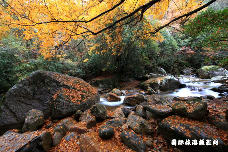 全天拍摄黑熊沟、大小兰沟的彩林红叶和潺潺流水。
