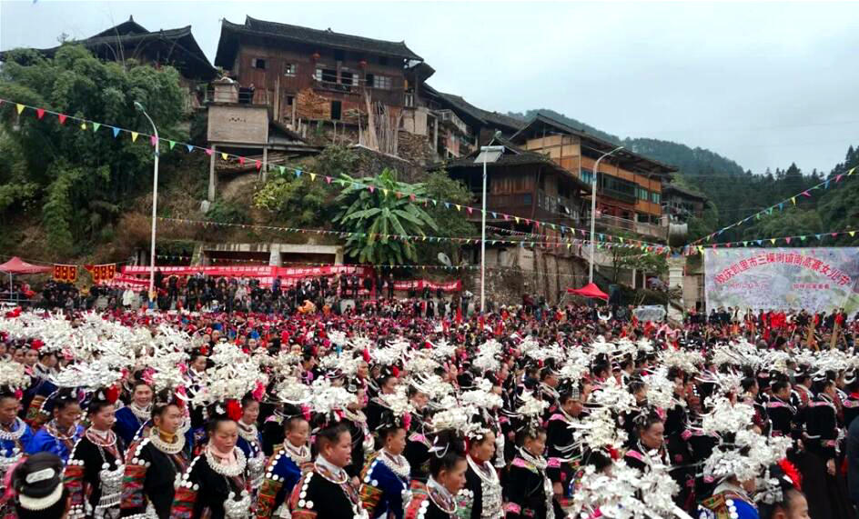 除了雷山县城以及西江千户苗寨有大型民间盛装游行外,黔东南的丹寨、台江也陆续的过苗年。