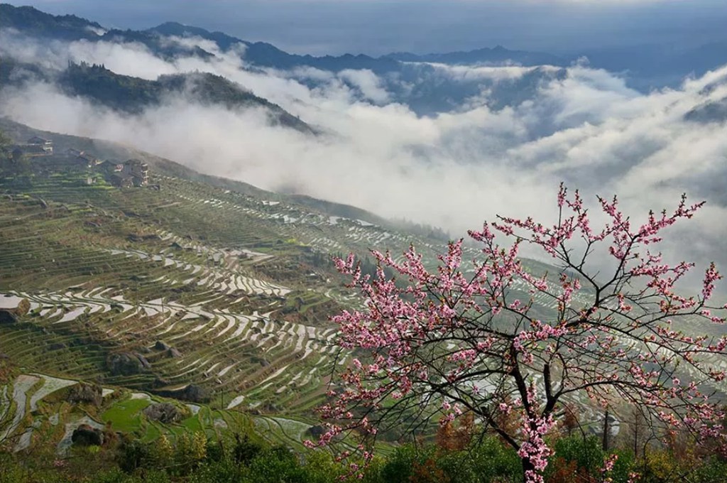 早上,早起前往海洋拍摄海洋桃花风光小品,下午前往龙脊古壮寨;晚上住龙脊古壮寨旅馆。