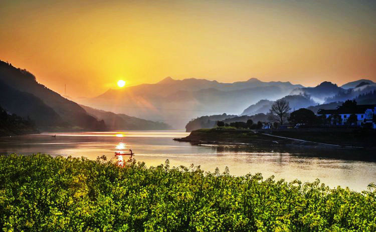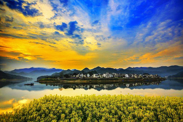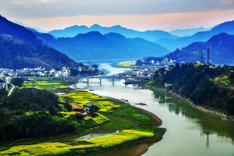 2、新安江山水画廊——它穿行于锦峰秀岭、山乡古建筑之间,好似一幅流动的山水画卷,故称之为新安江百里画廊。