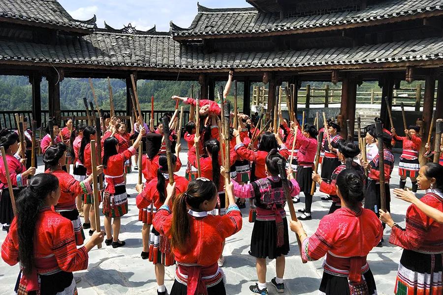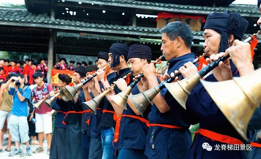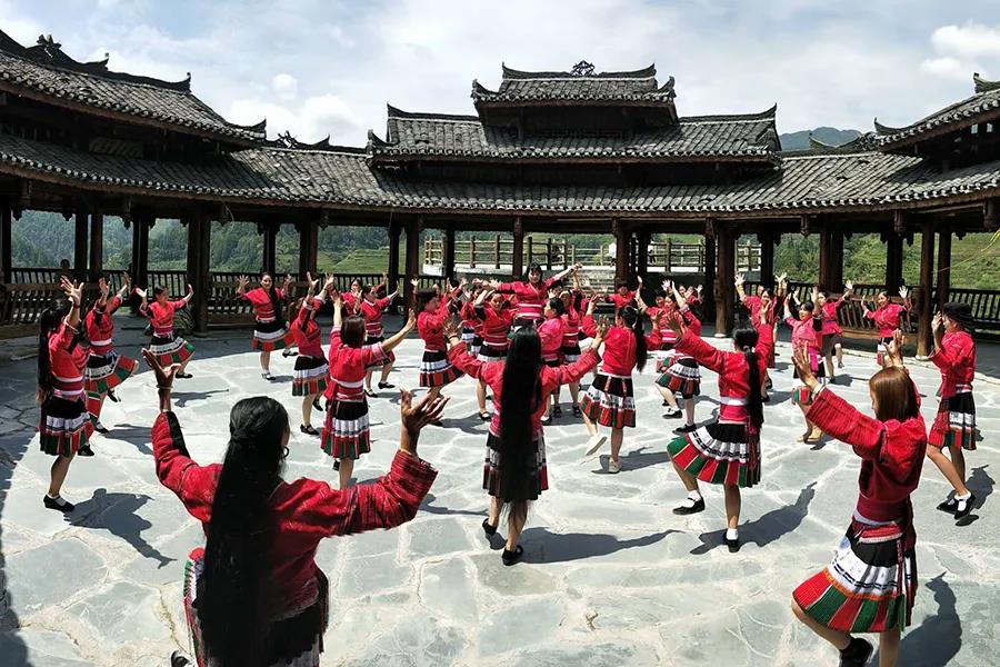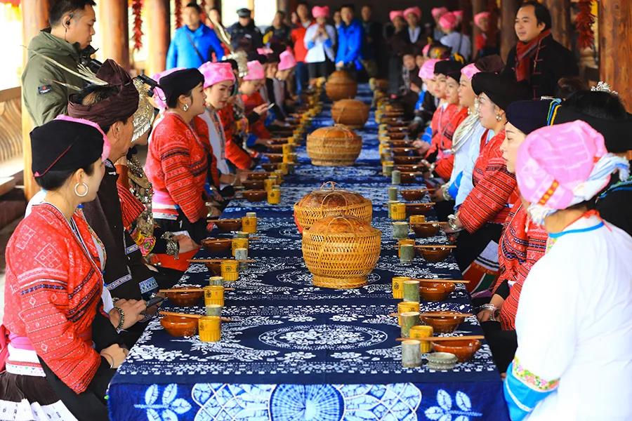 村寨里的姑娘和嫂子们手捧酒杯唱着欢快的敬酒歌,向远道而来的各位贵客敬上一杯香甜的龙脊水酒。