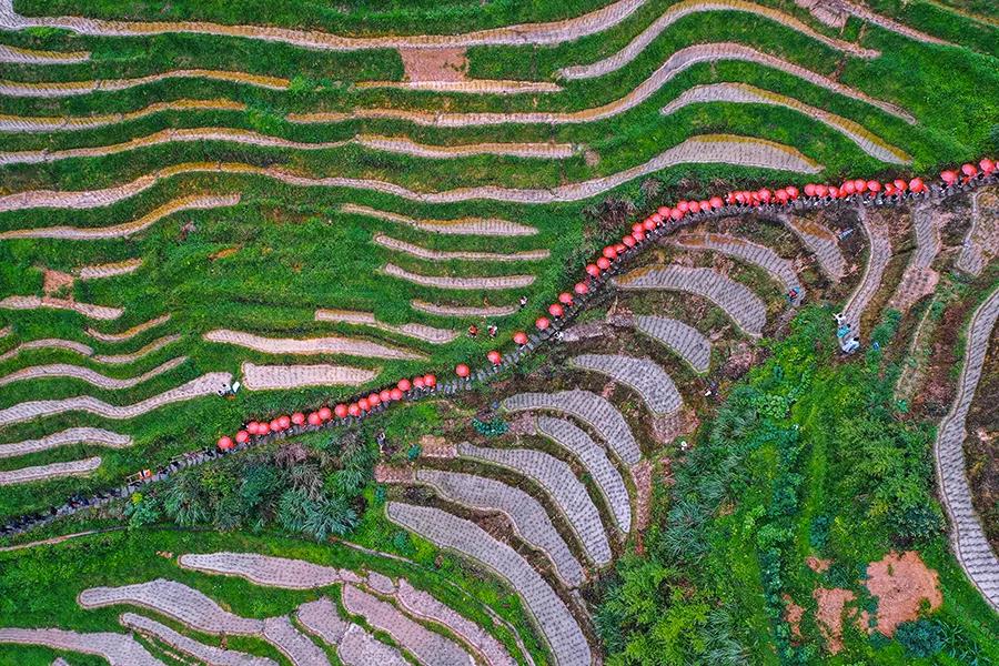 晒衣节当天来自全国各地的4对新人,按红瑶的传统婚礼习俗,举行盛大的集体婚礼,红衣定终身。