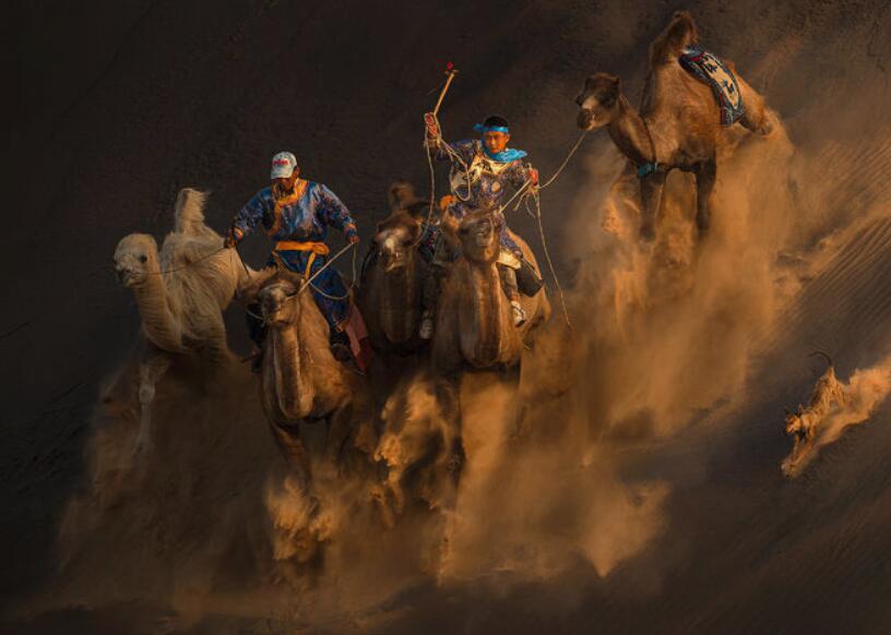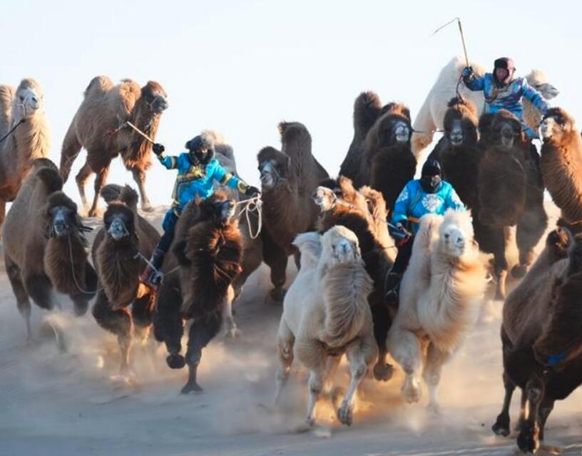 D2、早餐后拍摄牧民家庭那达慕博克比赛,拍摄结束后在景区餐厅内用餐,下午拍摄牧民赛骆驼,夕阳驼队至日落后结束拍摄。