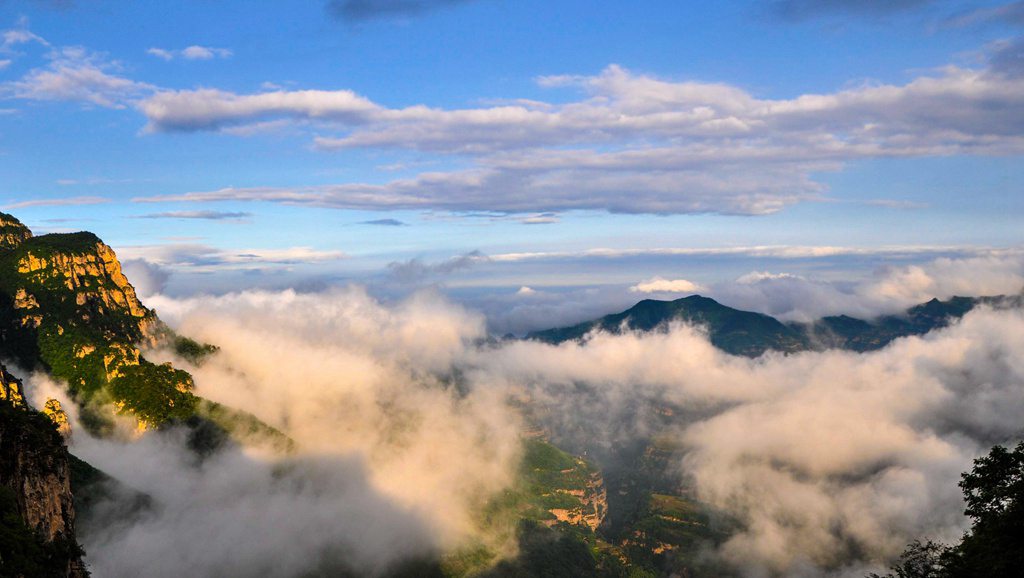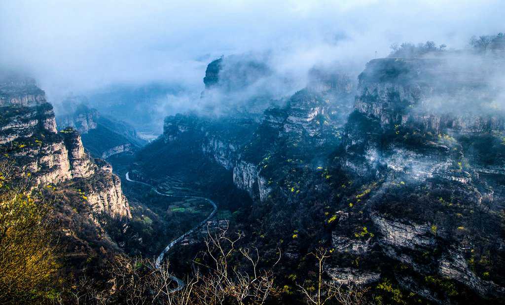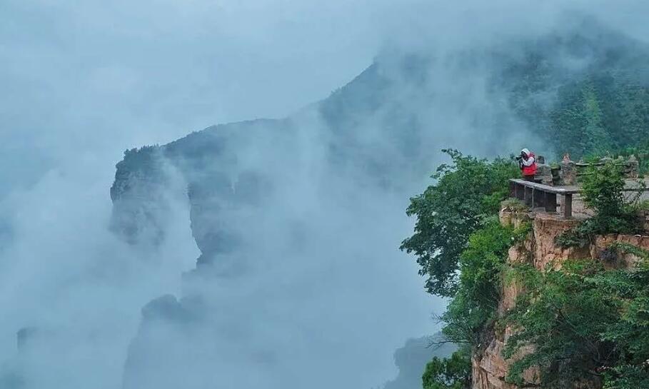 摄影圣地太行之巅,海拔1000米,其间,层峦登嶂,怪石峥嵘,终日云雾缭绕,风景尽盖群芳,集 雄,峻,奇,险为一体,矗立崖端眺望,沿途赤壁如刀劈一般。