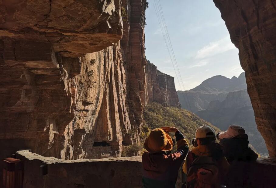 挂壁公路,地处与河南毗邻的山西境内,是当地劳动人们发扬智慧,勤劳,在太行的悬崖峭壁上,历经十五年艰辛卓绝的不懈奋斗凿出的一条生命之路。它全长1526米,共有35个天窗洞眼,如同一条彩虹镶挂在太行的绝壁之上,壮观之极。挂壁公路的修成,大大拉近了晋豫两省之间的距离,被称为“天路”,成为一条名副其实的~幸福路。晚住宿不变,住大峡谷酒店。