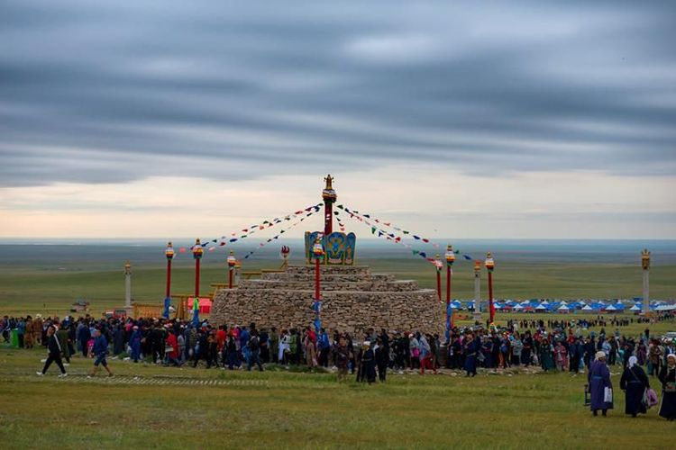相传,当年成吉思汗西征时,一日被敌军袭击,成吉思汗率残兵退到宝格德乌拉山下,然而敌军很快就追赶上来了。此时,将士们又饿又累,成吉思汗只好命令部队登上宝格德乌拉山躲避敌军。上了山后,成吉思汗仰望“长生天”长叹道:“难道我命该如此吗?大山,请保佑我。”霎时,云雾缭绕,山上山下一片云海,敌军怕有埋伏,不敢进兵,等了三天三夜成吉思汗的援兵来到了山下。成吉思汗在山上挥动令旗指挥将士们,不到一个时辰就一举歼灭了敌军。成吉思汗徒步下山后,抚胸告天:“我得以免灾,我之区区性命,被宝格德乌拉山所搭救,日后我必常常祭祀此山,我的子子孙孙当与我一样祭祀”。说完,他向着太阳把腰带挂在脖子上,将帽子放在右手上,屈身拜了九拜,洒马奶酒以祭。从此,每当绿草如茵,鸿雁北归时,草原上的牧民就进行祭山祭敖包活动。