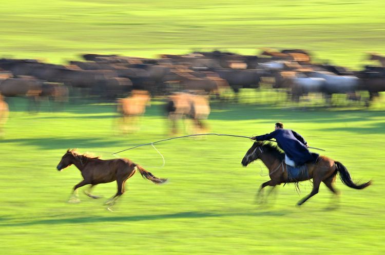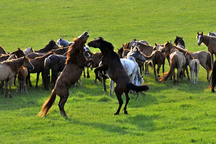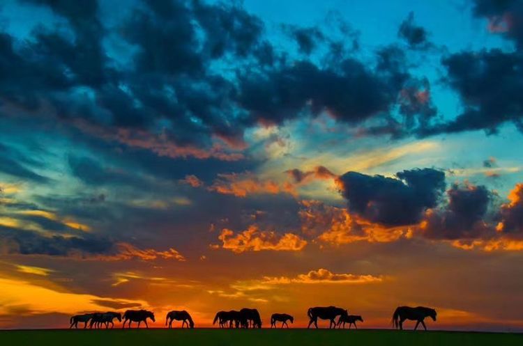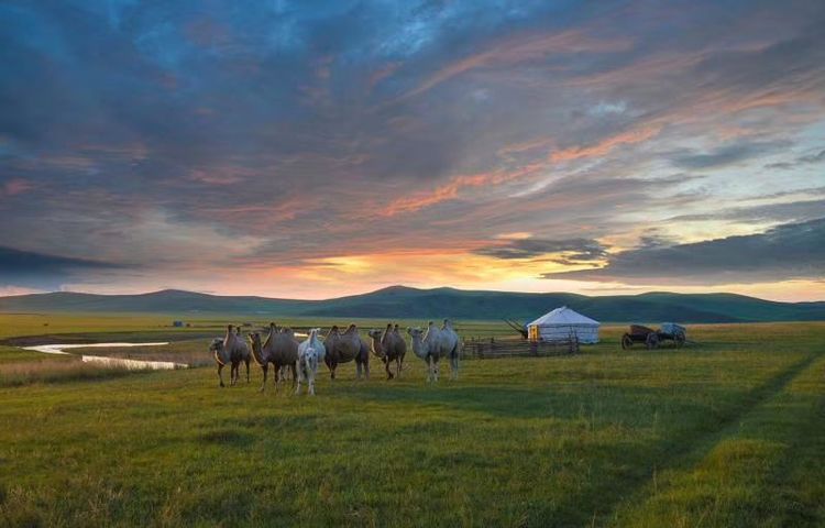 拍摄内容:草原风光,马群,牛群,羊群,勒勒车,蒙古包,天下第一曲水莫尔格勒河风光等。傍晚拍摄“群马奔腾、牧民套马”及天下第一曲水莫尔格勒河落日,场景壮观。晚入住金帐汗蒙古包(5-6人1个包)。