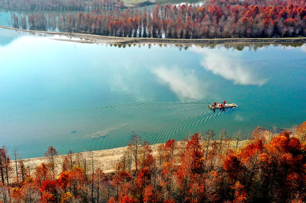 3、七彩滩、千岛十八湾等,(这些地方安排当地群众演员,渔民、渔船农民、工人协助场景拍摄,在五彩斑斓的秋色纯风光里面加入了人文,让环境更有生气,更具魅力 ,让照片有故事,文化性,灵动性,大大提高了出片率,让您不虚此行,收获满满。