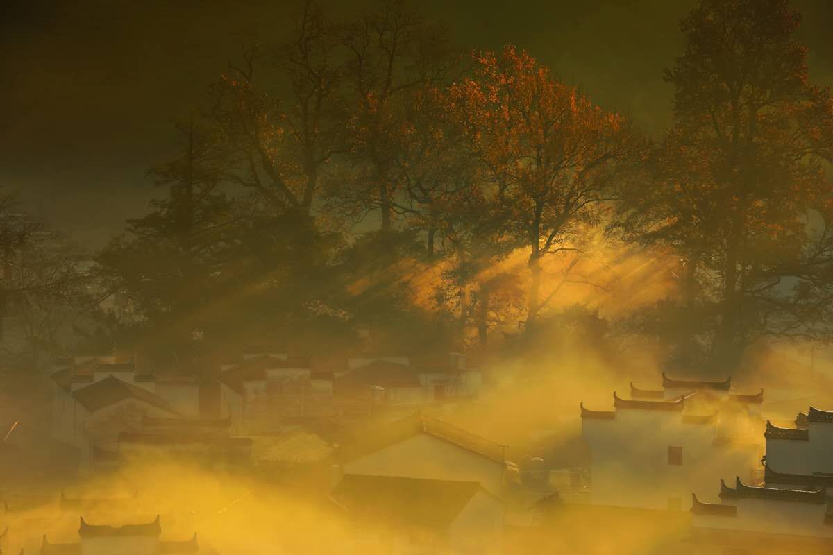 D5天:早起前往对冲拍摄古村红枫日出晨雾。整个村庄被一棵棵千百年古枫树,苦储树,樟树所包围,每到秋天10月中旬起,对冲村枫叶便陆续转红,漫山秋红掩映着徽派粉墙黛瓦的古民居,村在画中,人行画里,构成了一幅幅美丽的画卷。当太阳升起,阳光刺进树林,枫叶中的光影变化强烈,极具视觉美感。它不像春天油菜花黄的耀眼,也不像秋季晒秋气势壮观。它的美更多地是一种孤傲,鲜少外界打扰,遗世而孑立。由于被发现的晚,相对保持了天然之趣与古拙之美....早餐后拍摄鲜为人知保存完好的原始古村落。