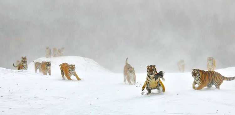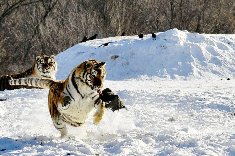 拍摄内容:早餐后乘车赴横道河子镇。全天在横道河子林海雪原拍摄东北虎。几十只处于繁殖交配期的东北虎威风凛凛,在厚厚的雪地里欢腾跳跃,饿虎扑食,很是壮观。当地摄影老师精彩导虎,为影友拍大片创造好条件。下午到达牡丹江市结束摄影之旅。