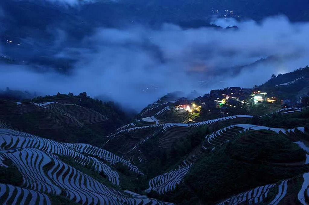 早起,天亮前到桂林田心村拍摄山水田园风光日出,然后前往龙脊梯田拍摄梯田风光日落;晚上入住龙脊田头寨农家旅馆。