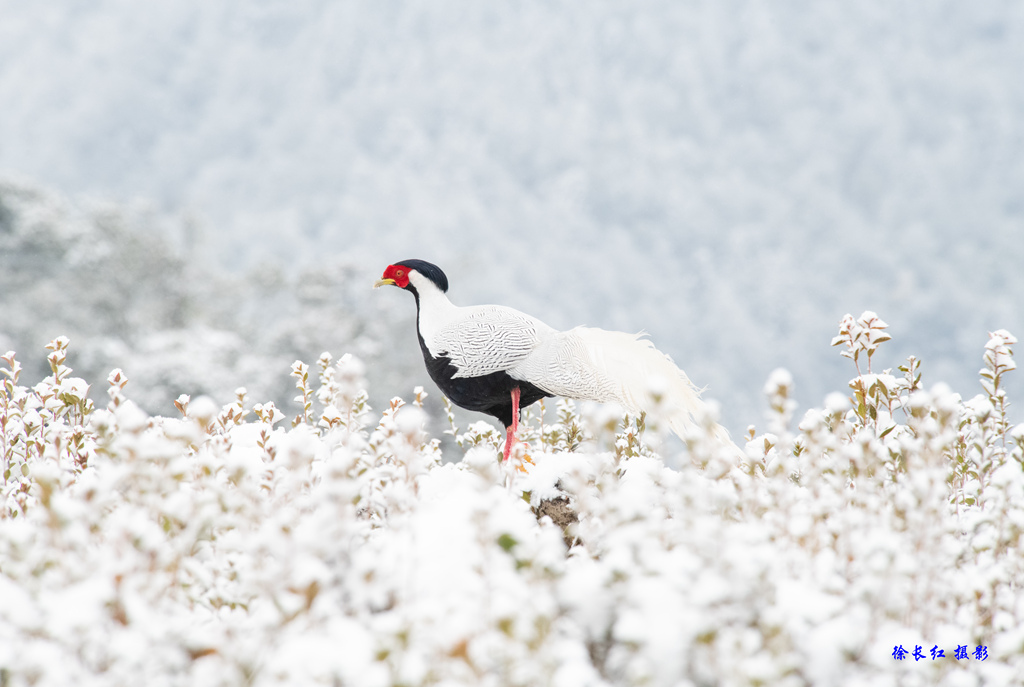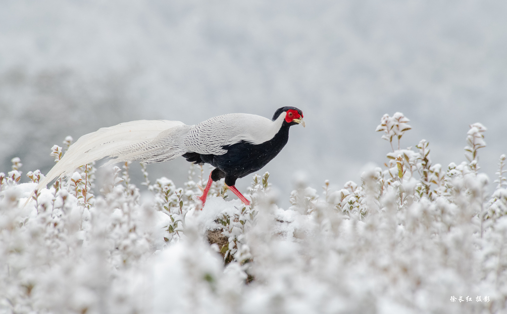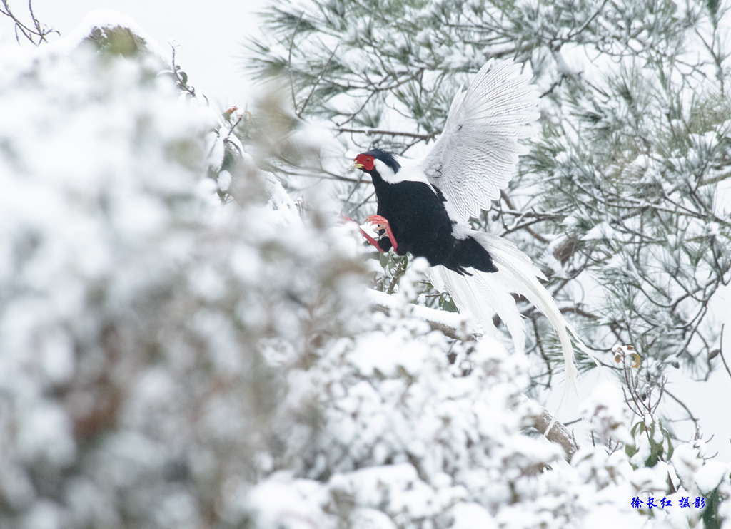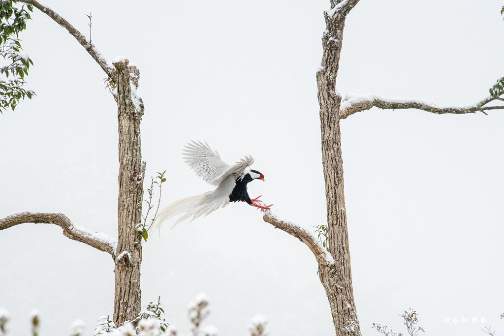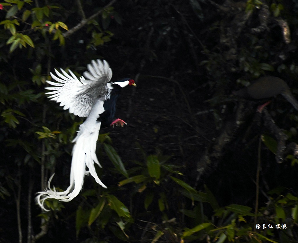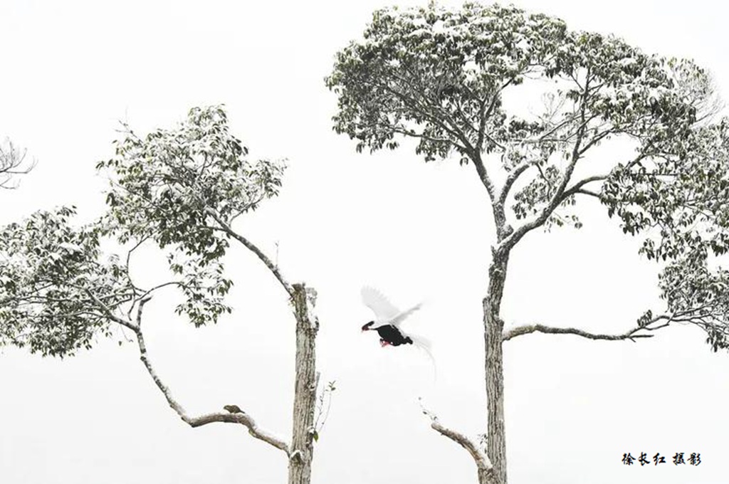 十一月 — 一月:霜降过后,部分树叶染成橙红,白鹇穿梭其间,白羽与红叶形成鲜明撞色。若遇轻霜覆盖的清晨,雄鸟站在岩石上梳理羽毛,霜粒落在羽尖,像撒了层碎钻,连周围的蕨类植物都成了天然的前景。偶尔有群鸟惊飞,白色的身影掠过黛色山峦,与远处的竹林构成层次分明的画面,让镜头里的秋冬三明,多了份灵动的野趣。蓝天白云版:在蓝天白云下,以广阔田野或山林为背景,拍摄白鹇活动画面,展现其悠然自得状态。