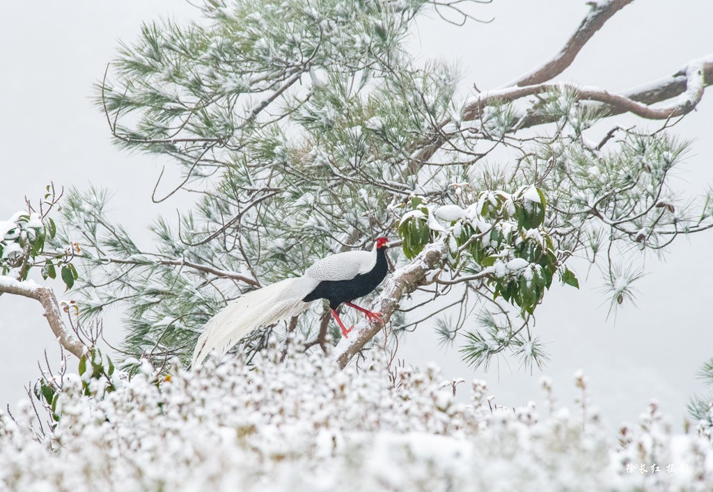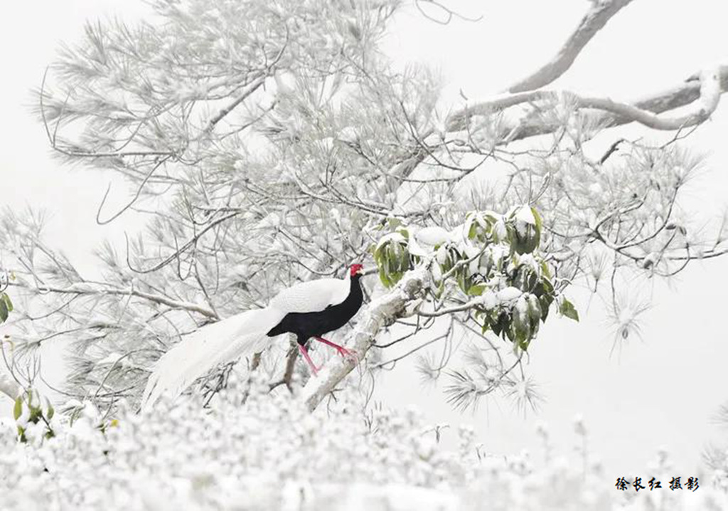 新羽版:秋季白鹇换上新羽,羽毛色彩更鲜艳。抓拍白鹇在枝头展示新羽姿态,或与周边秋景互动画面。