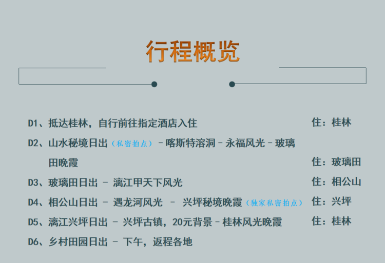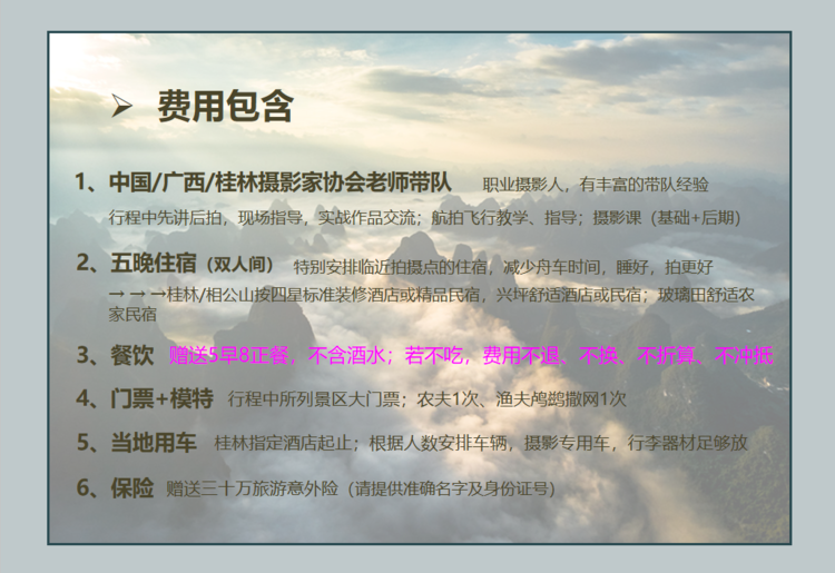 ➅ 确认报名请交报名费1000元/人,余款抵达桂林时一次性付清!