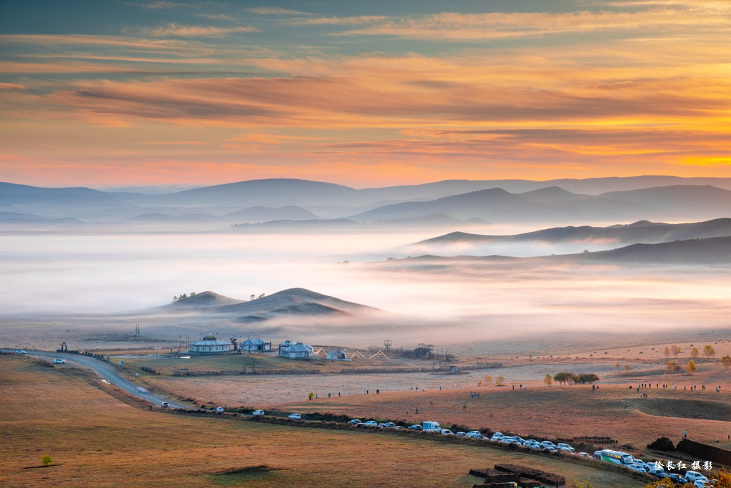 第二天:清晨,拍摄敖包吐日出,将军泡子在平流雾中若隐若现,天际线颜色明丽,黄红交映,山丘层层叠叠,交错排列,雾气弥漫其中,静静流动,山脚的白桦林点缀其间,天空渐渐露出狭窄的暗红色长带,带子的上面是清冷的淡白色的晨曦。下午:拍摄万马奔腾,小规模的马群拍摄,拍摄落日余晖美景,山丘连绵起伏,草原平坦辽阔。森林草原有机结合,兼具雄奇与秀美。落日奇景,优雅秀丽,粗犷雄浑,无限生趣。
