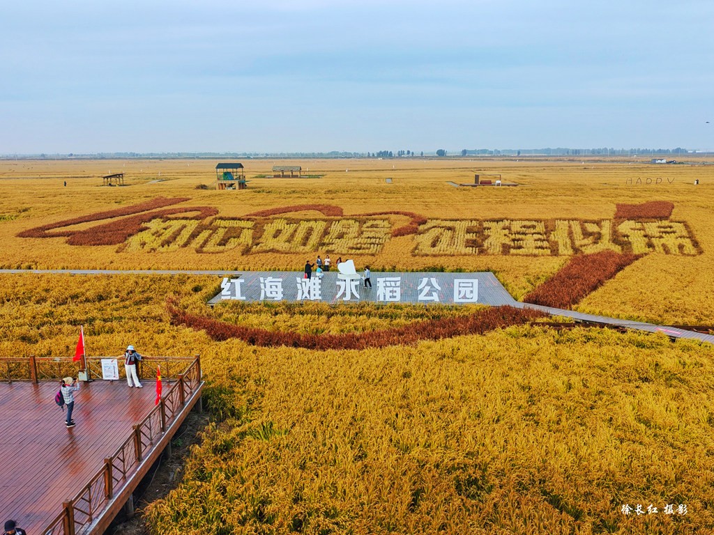 秋日的红海滩国家风景廊道,是大自然挥毫泼墨的极致之作。此时的碱蓬草褪去春夏的浅红,晕染成热烈的绛红、深沉的赤紫,像一块无边无际的红毯,从栈道脚下一直铺向天际,与远处的湛蓝天空相接,划出一道震撼人心的色彩边界。稻梦空间:稻田经巧妙规划,种植不同颜色水稻品种,秋季长成一幅幅精美稻田画。登上观景台俯瞰,金黄稻田与周边红海滩、芦苇荡构成色彩斑斓的秋日盛景,乘坐小火车穿梭其中,更能沉浸式感受田园秋意 。