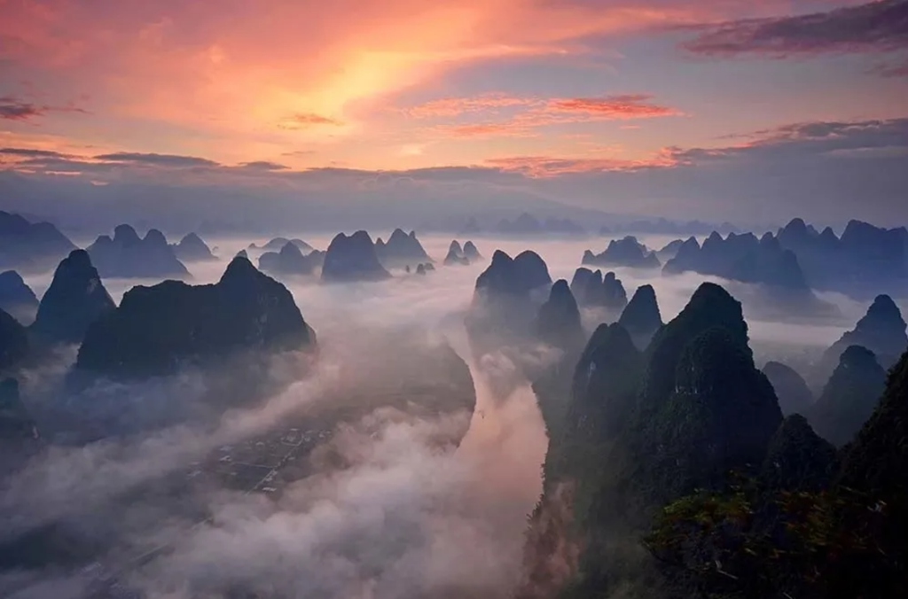 早起,天亮前到阳朔十里画廊拍摄著名的遇龙河风光日出,拍摄完毕后用早餐,然后返程回桂林结束愉快的八天摄影创作行程。