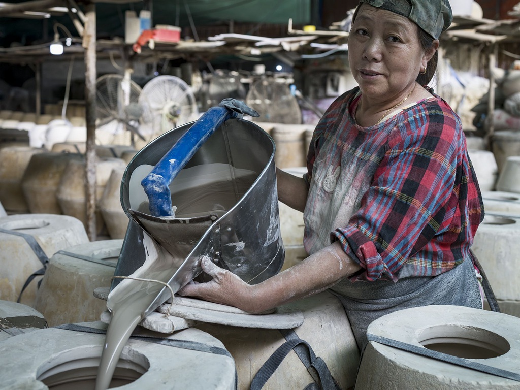D6天:早餐后拍摄制作大花瓶灌浆、接瓶、喷釉、印花,出窑等场景。下午拍摄老酒坊蒸杂粮、摊凉、拌酒曲、装缸、蒸馏酒全套做酒场景。(含早中晚餐)